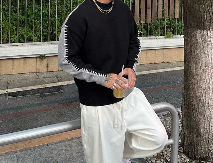 Cool Contrast Color Top All-matching Knitted Sweater