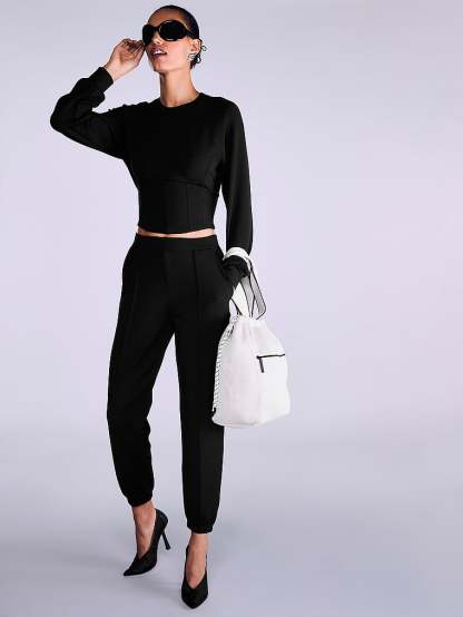 The reviews are in and everyone's loving our luxe Featherweight Knit fabric for its ultimate softness and comfort. This slightly shrunken style features a nipped-in waist and seaming details to flatter your shape.