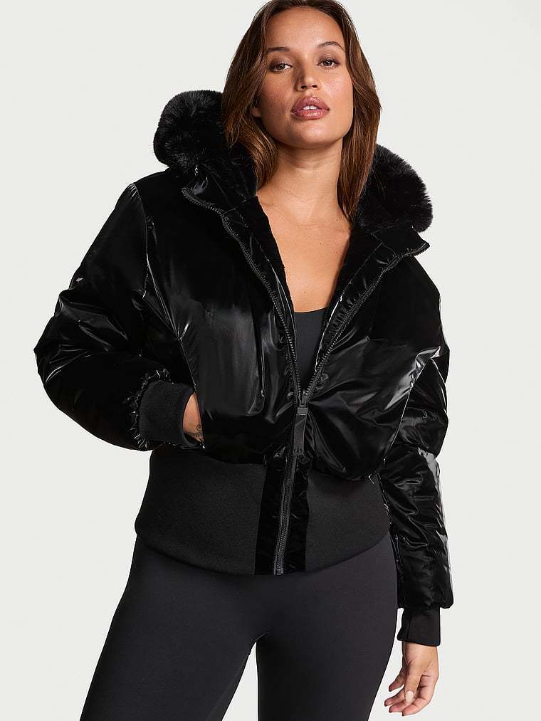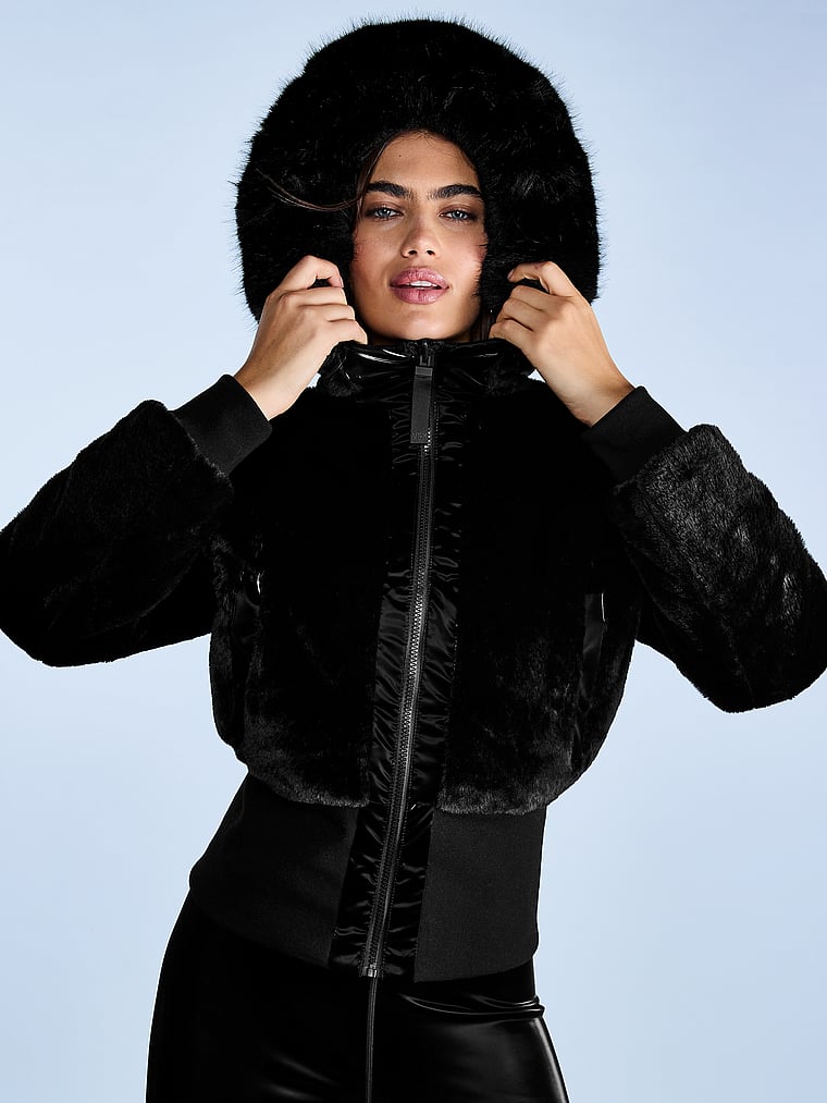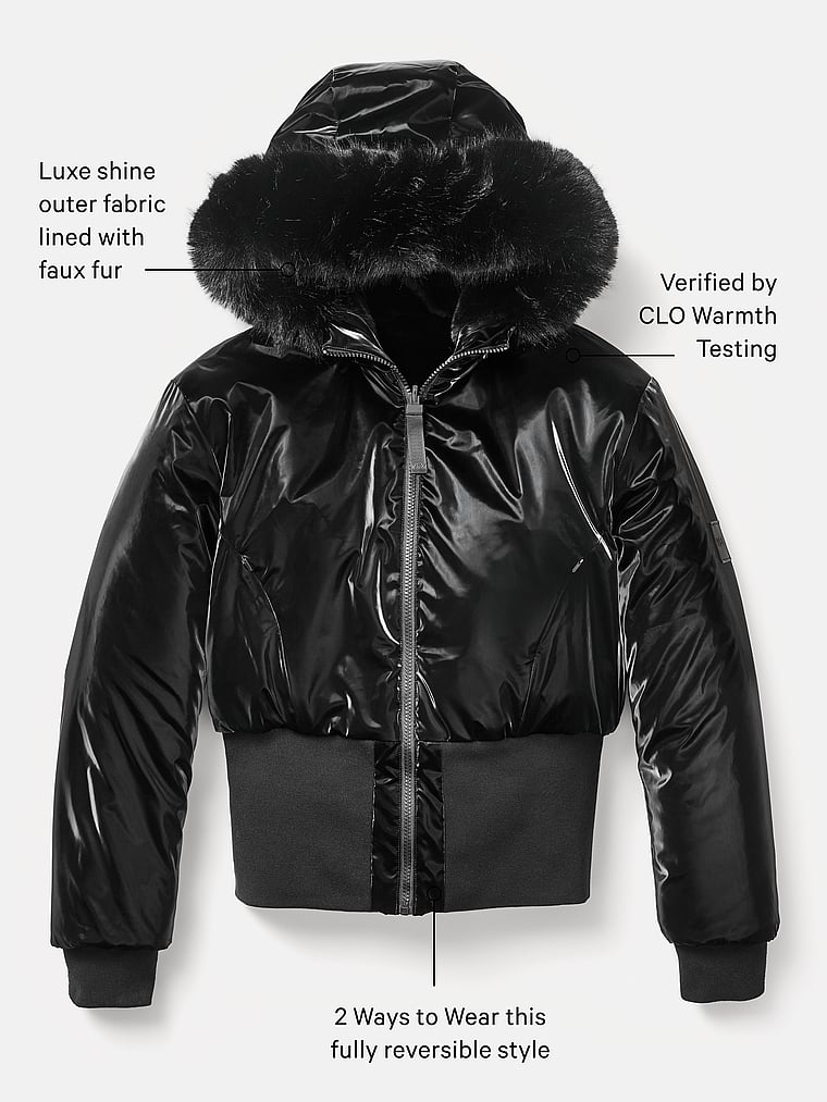 Introducing outerwear, VSX-style. Bring your A-Game to bundling up this season in our cozy-warm bomber featuring high-shine fabric on one side, with ultra-plush faux fur on the other for a chic look any way you flip it.