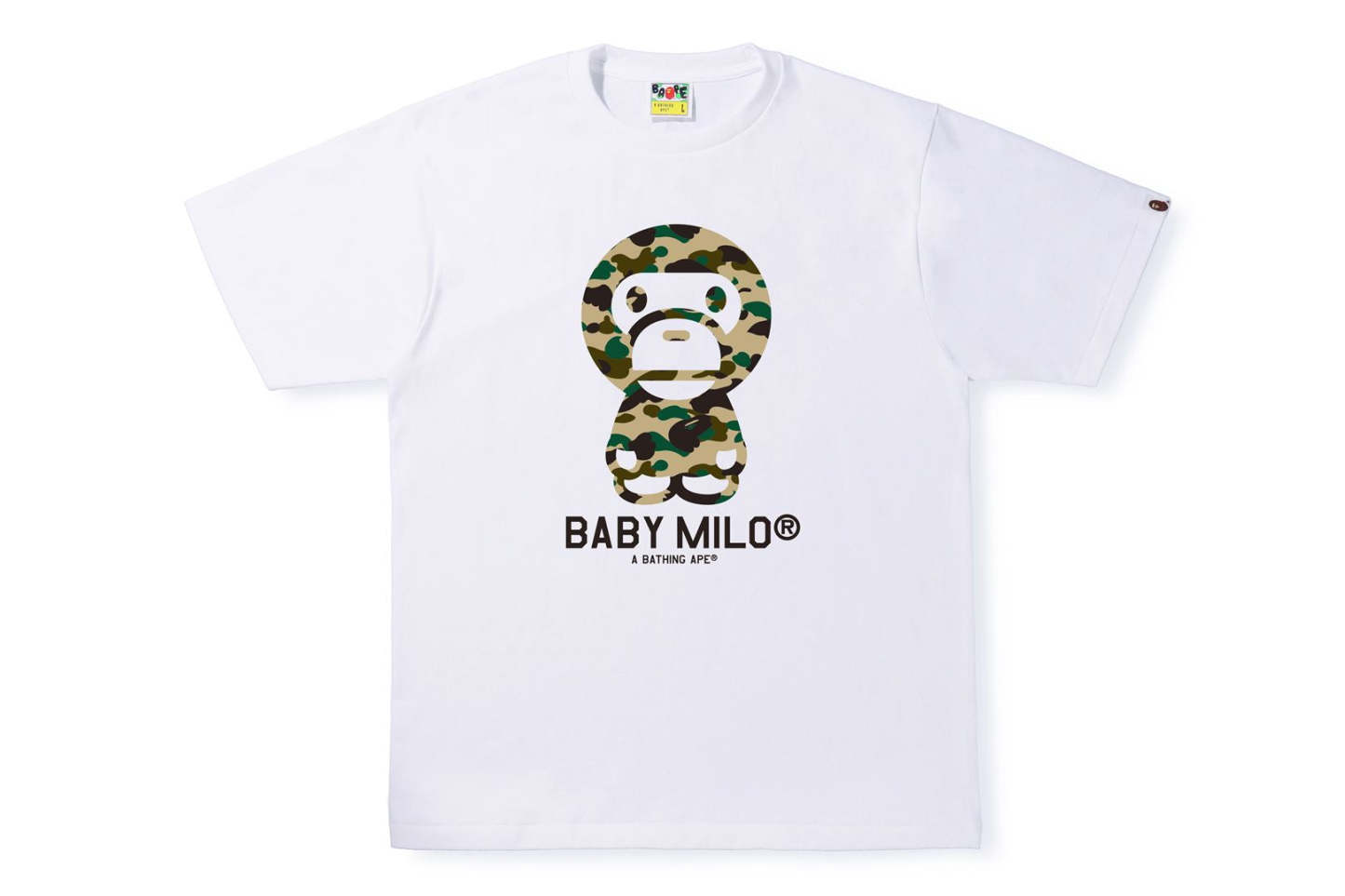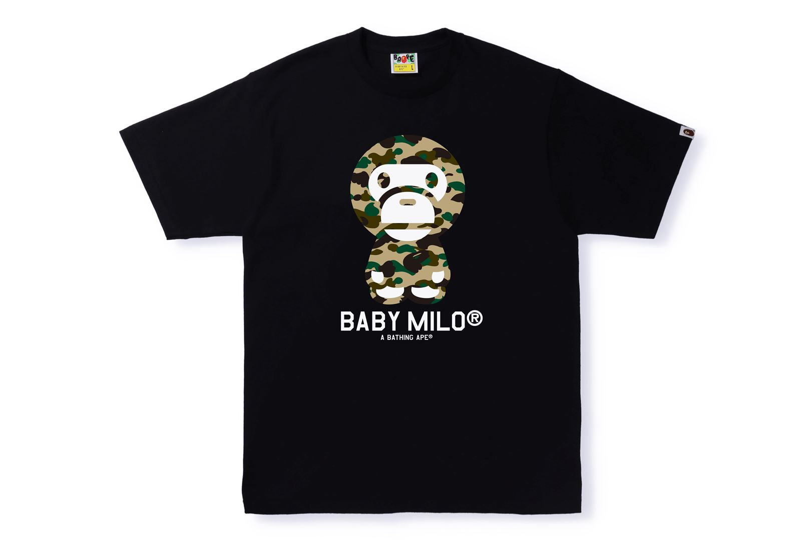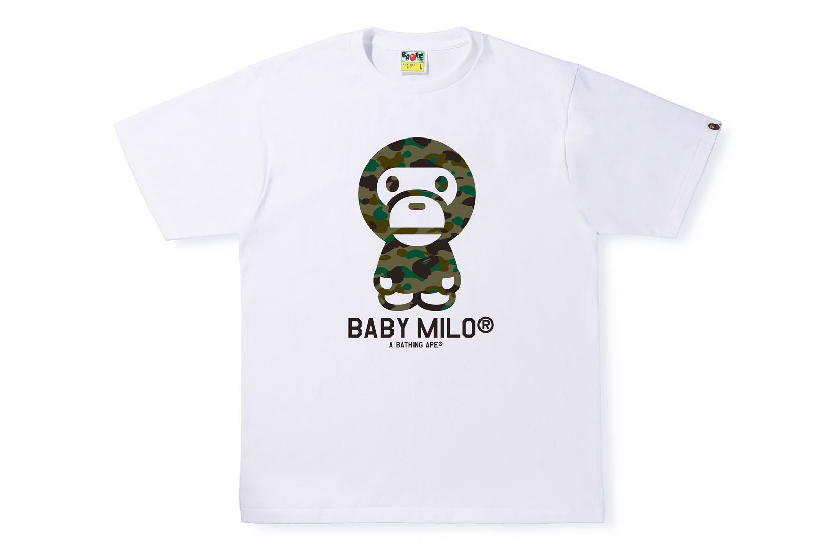 Short sleeve TEE with original cotton jersey body. 1ST CAMO BABY MILO rubber print on the front. Designed with a piss name attached to the left hem. Regular fit silhouette. Available in 4 colors and 6 sizes.