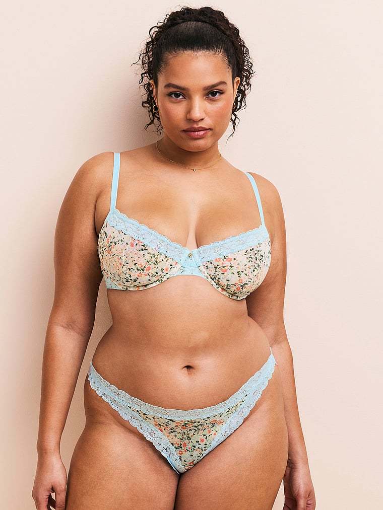 Playful, flirty, and the perfect addition to your lingerie drawer. Delicate lace trim adds the finishing touch to this romantic, everyday pair. Make it a match with the Akari Unlined Demi Bra.