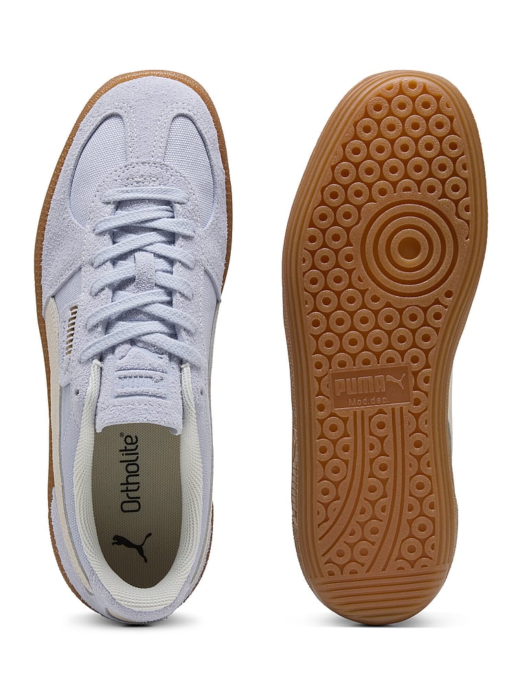 Straight from the archives, it's the PUMA Palermo. This classic terrace shoe debuted in the 80's and now, it's back for the fans. With its signature T-toe construction and classic gum sole, this version features a textile upper and suede overlays.