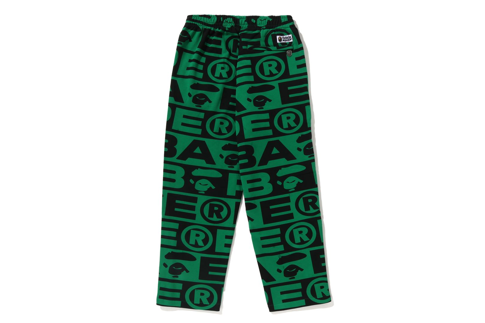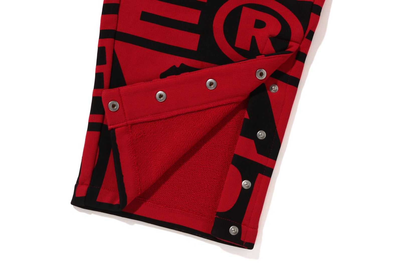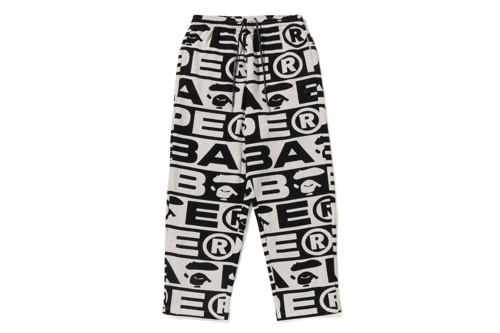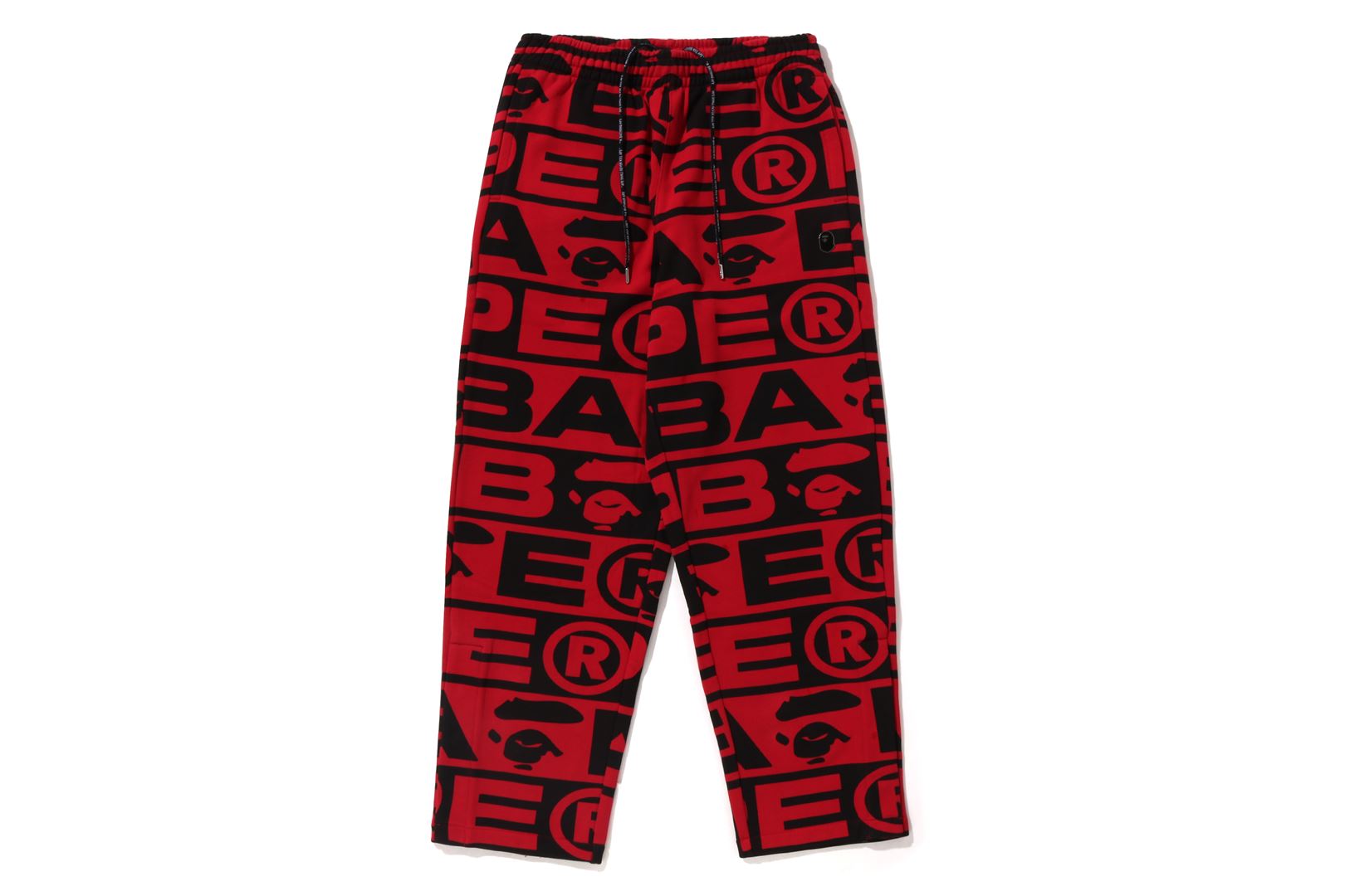 Sweatpants made of cotton/polyester blend fleece material with BAthtPE?? logo printed all over. Slash pockets on both sides and zip pocket on the right back. An AthtPE HEAD type charm is included at the tip of the zip. Comes with an original spindle with BAthtPE engraved stopper on the waist, allowing you to adjust the silhouette. Wide silhouette with room around the waist and thighs. Available in 3 colors and 5 sizes.