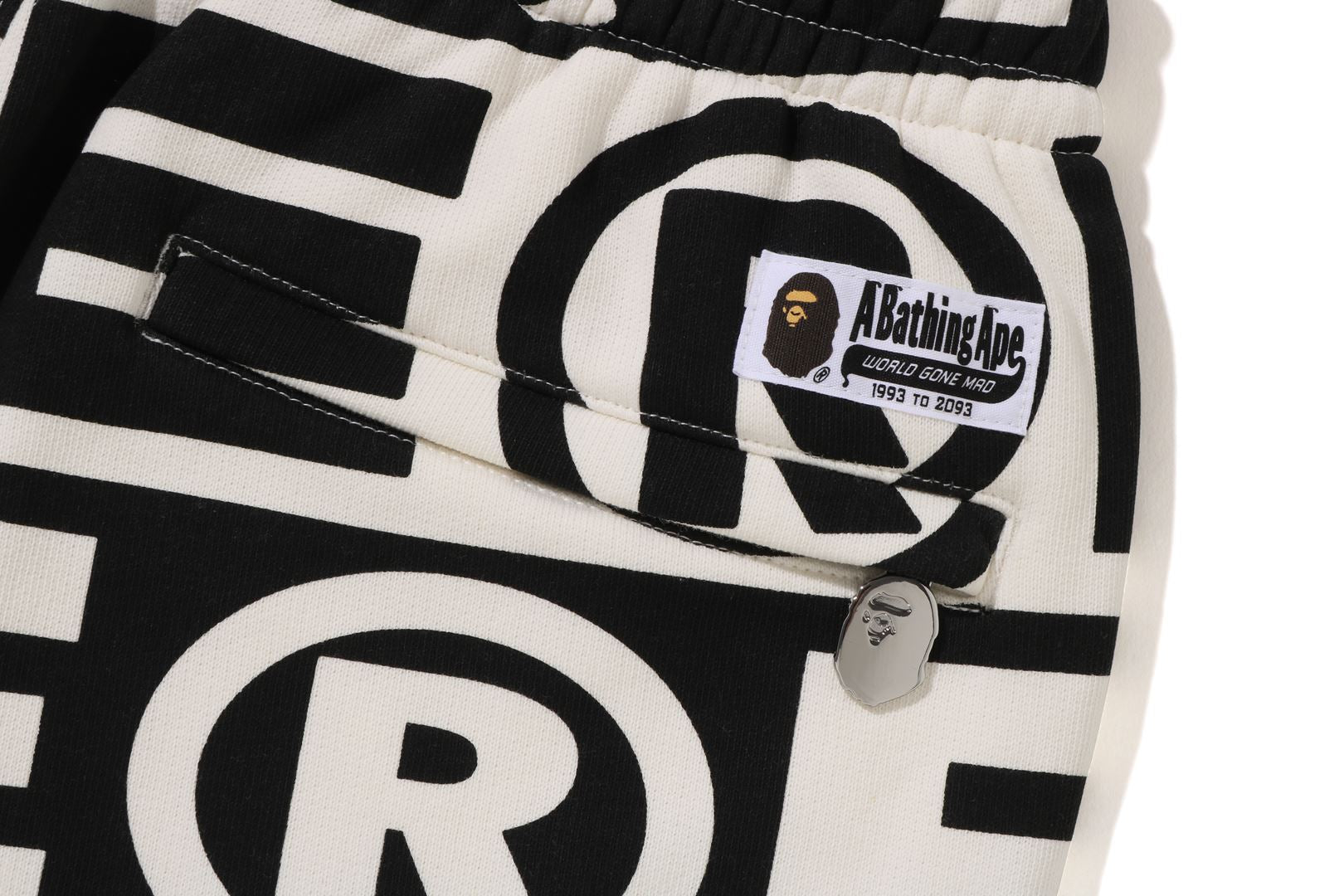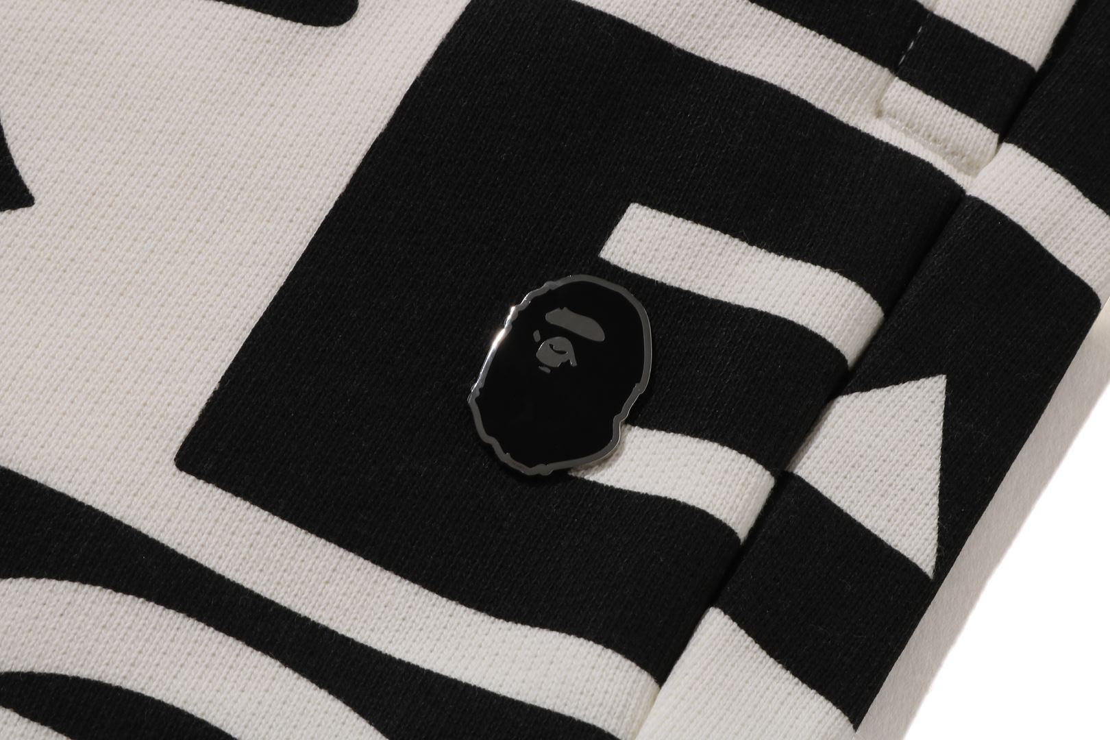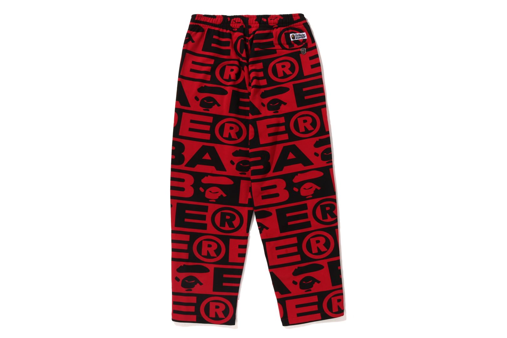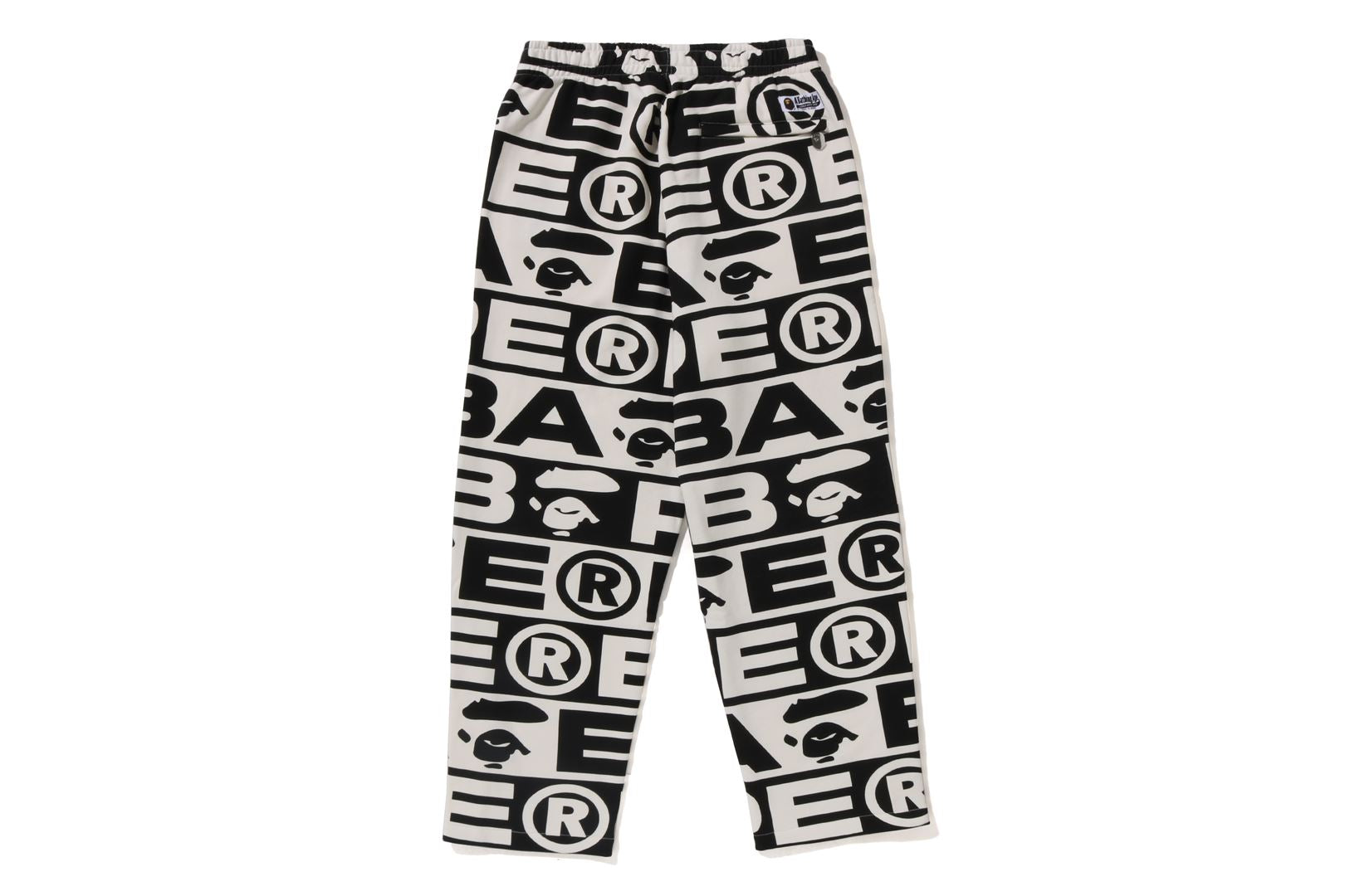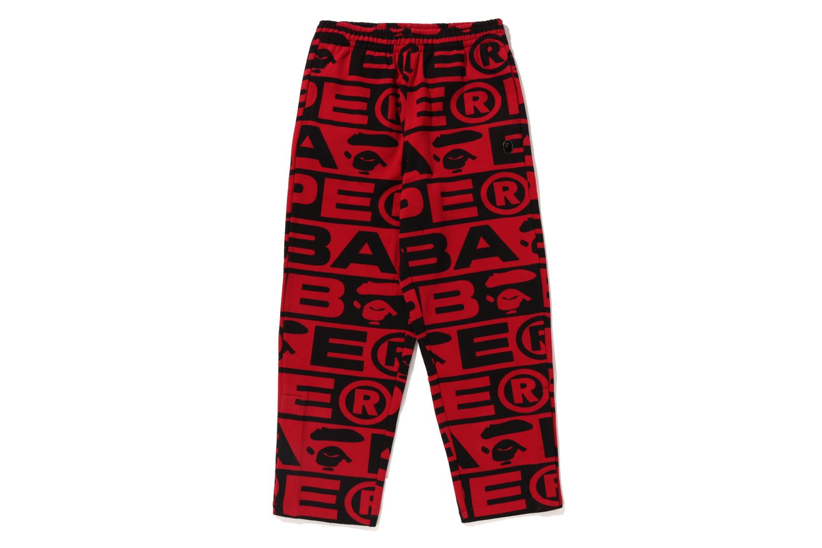 Sweatpants made of cotton/polyester blend fleece material with BAthtPE?? logo printed all over. Slash pockets on both sides and zip pocket on the right back. An AthtPE HEAD type charm is included at the tip of the zip. Comes with an original spindle with BAthtPE engraved stopper on the waist, allowing you to adjust the silhouette. Wide silhouette with room around the waist and thighs. Available in 3 colors and 5 sizes.