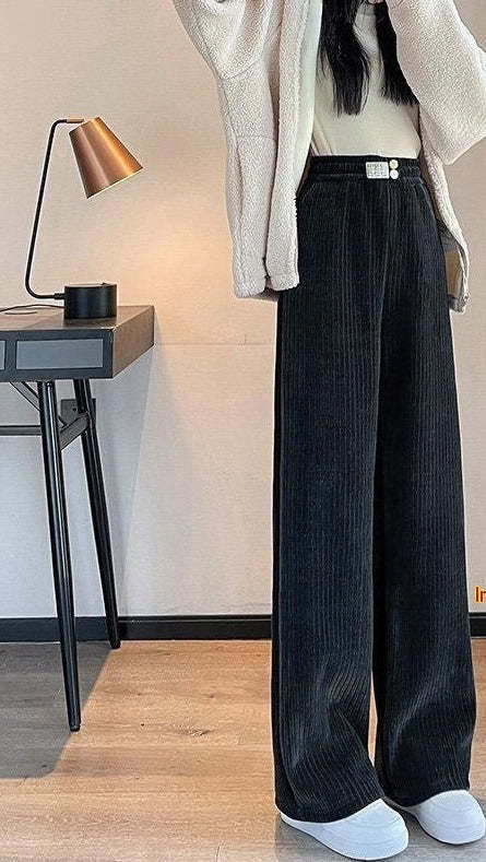 Thick Lambskin Women's Wide-leg Pants Autumn And Winter Loose