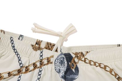 Shorts made of glossy polytaffeta material. A design expressed with JEWELS all-over print on the entire body. An AthtPE HEAD one-point patch is attached to the left thigh. Basketball shorts-