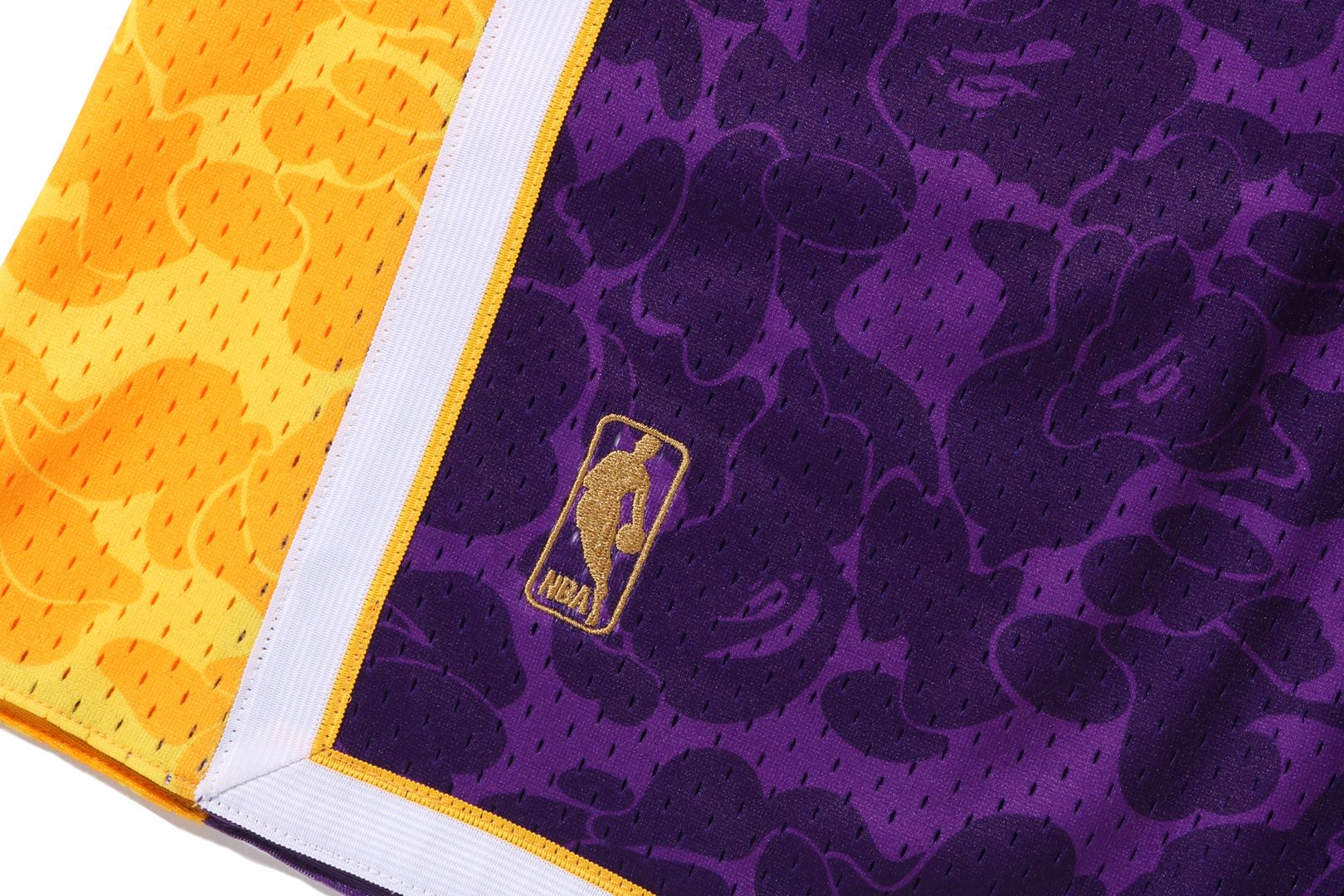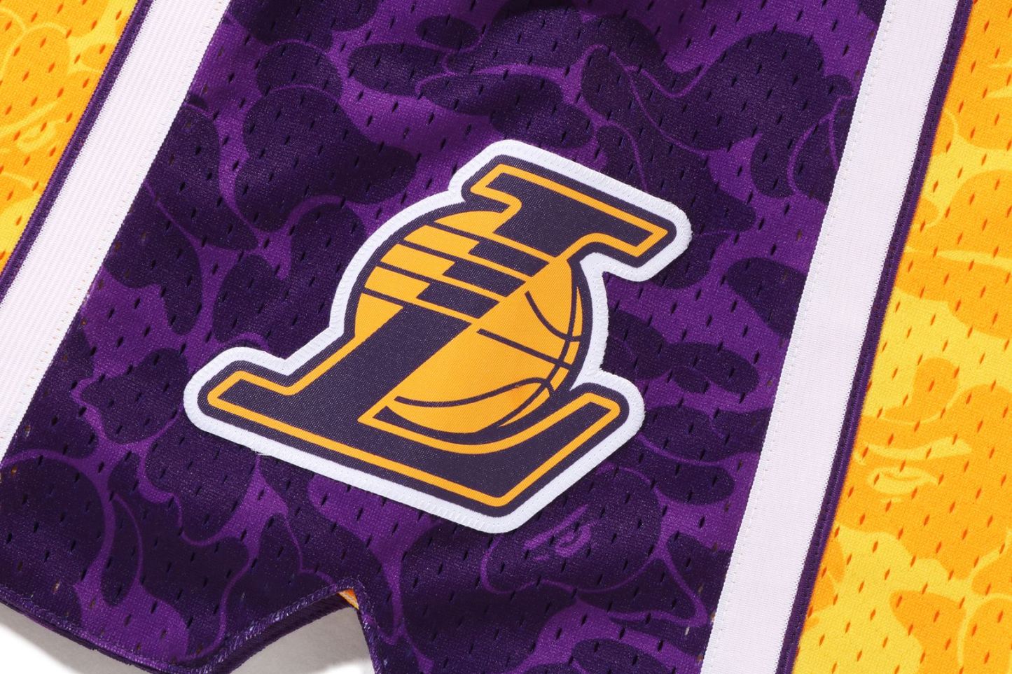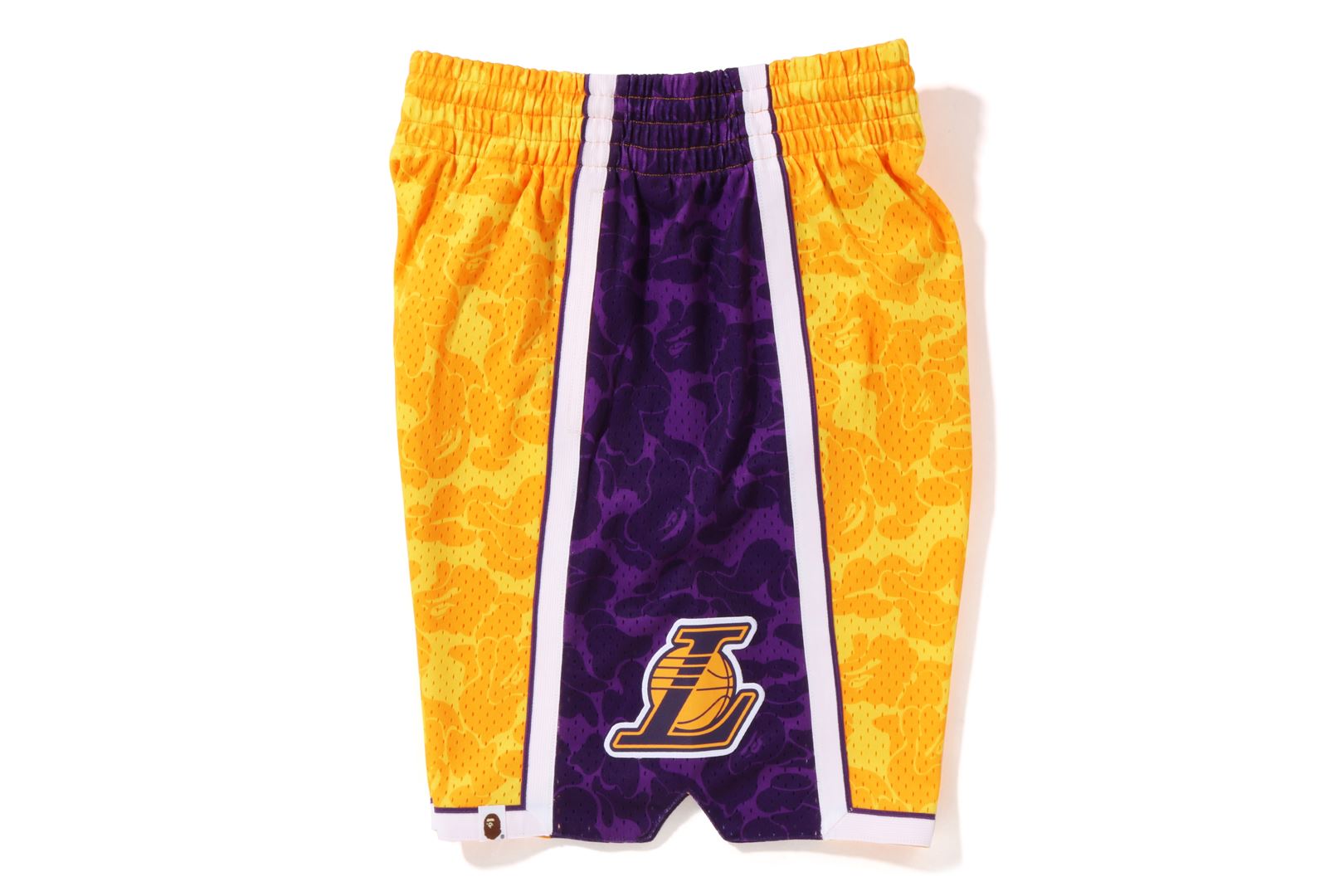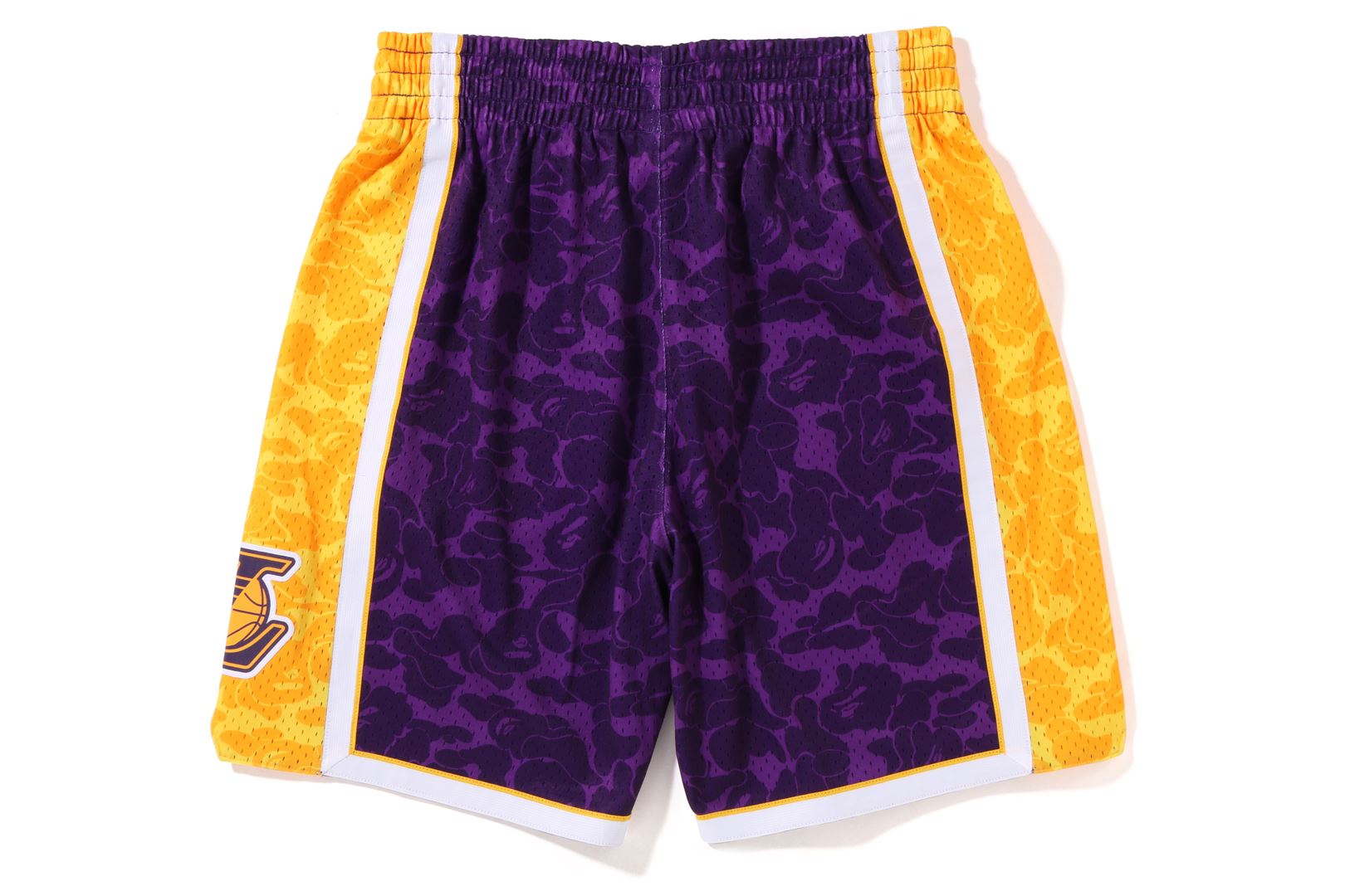 Basketball shorts made of polyester ABC-CAMO pattern mesh fabric. The NBA logo is embroidered on the right hem, the Los Angeles Lakers logo is embroidered on the left side, and the piss name is placed on the left hem. A silhouette with a relaxed fit. Available in 2 colors and 5 sizes. A triple collaboration model with Mitchell & Ness and the Los Angeles Lakers.