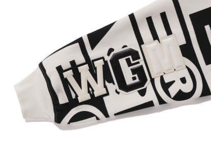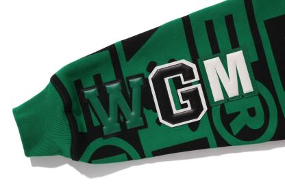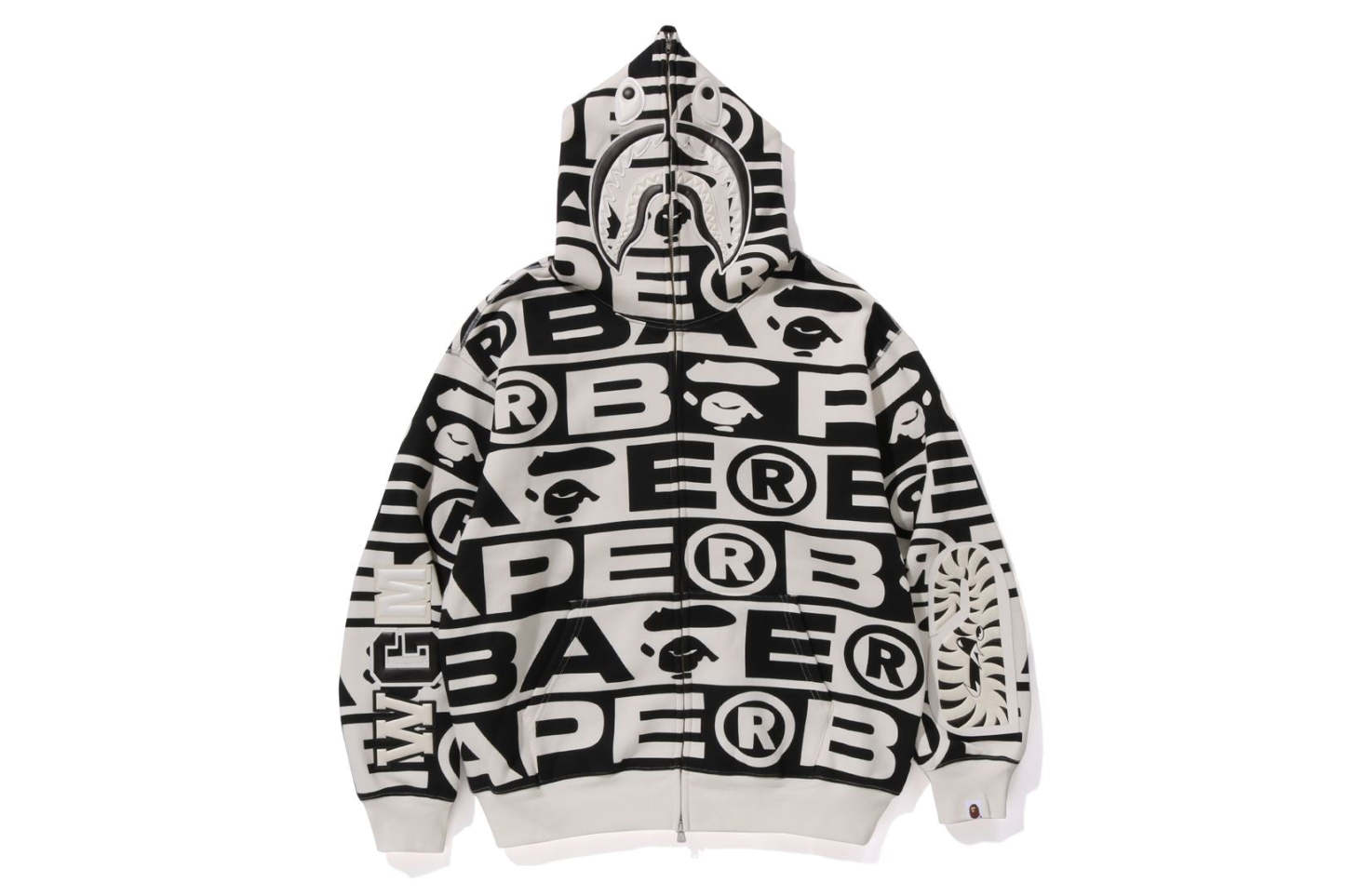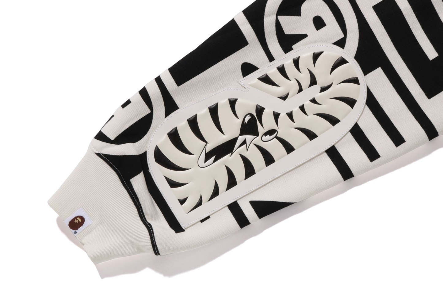 ??Zip-up hooded made of cotton/polyester blend fleece material with an all-over printed logo. Designed with SHARK leather appliqu on the hood front, WGM leather patch on the right arm, and rubber printed TIGER motif on the left arm. A muff pocket is placed on the abdomen and a piss name is placed on the left sleeve. Wide silhouette with plenty of room. Available in 3 colors and 5 sizes.