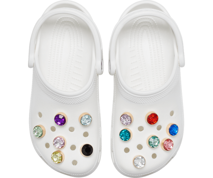 Pop some personality into your shoes with this Gold and Gem 13 Pack Jibbitz™ charms. They’re the perfect addition to your favorite pairs of clogs, slides, and more.