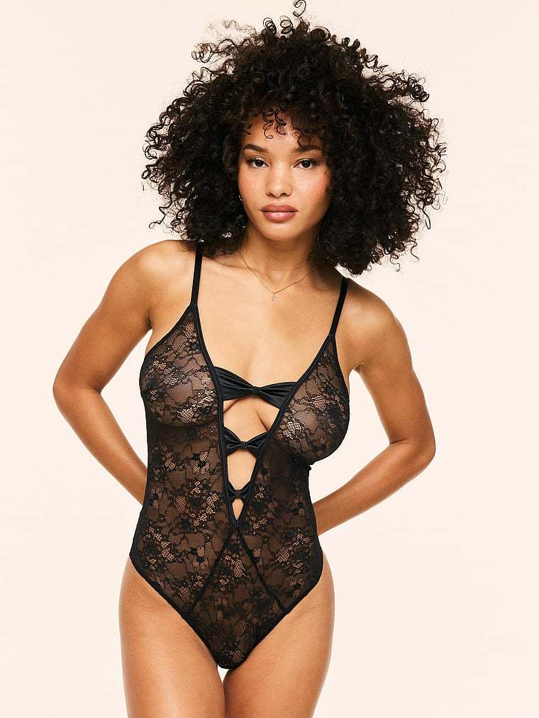 A plunging V-neck and lace construction make this Bodysuit the perfect look for romantic nights in and out.