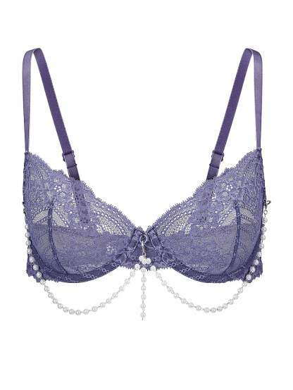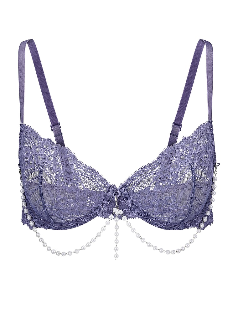 Underwired lace cups and removable pearl strands draped along the underband give this unlined Bra a fun look. Fully adjustable straps and a hook and eye closure help you find the perfect fit.
