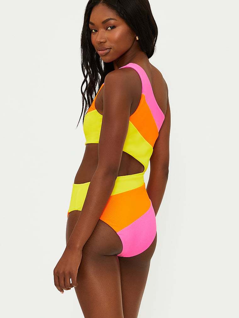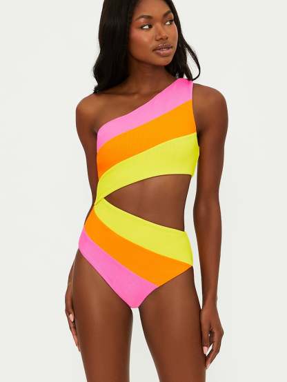A playful single strap parallels an edgy sharkbite cutout in this super-vibey One-Piece.