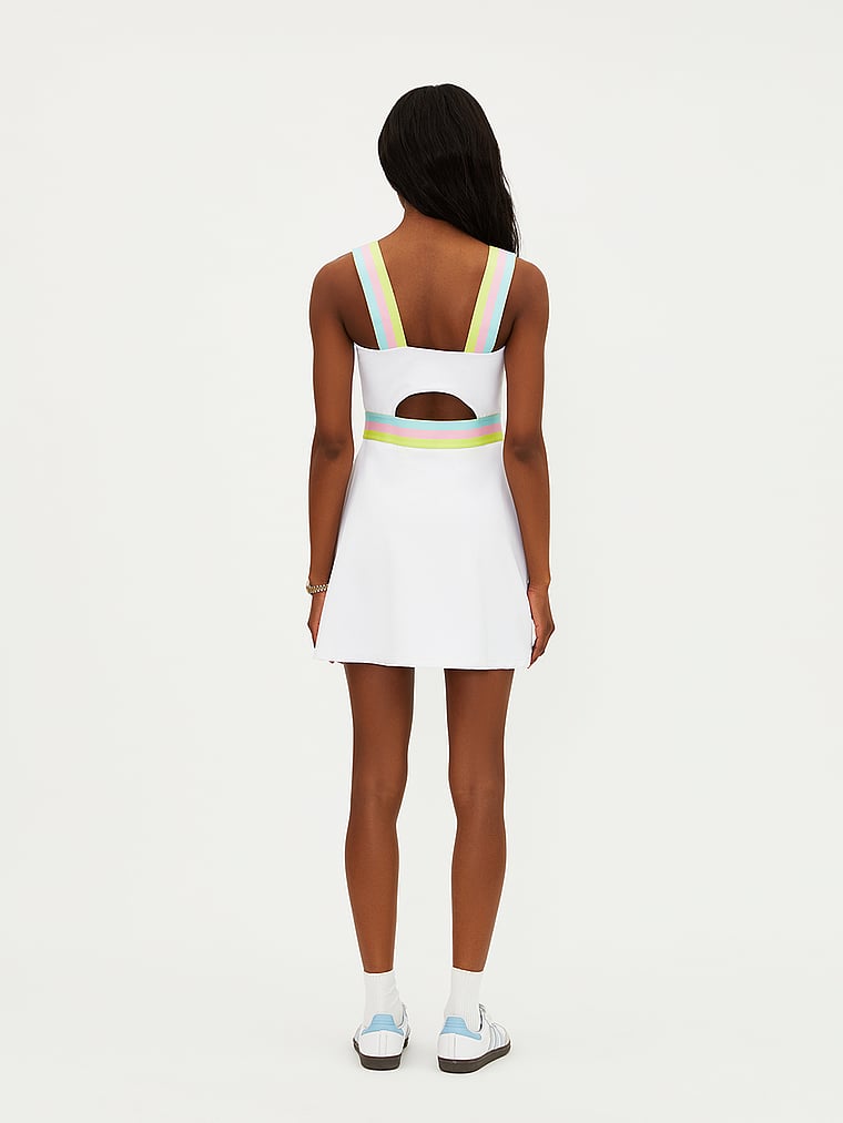 This sporty mini tennis Dress has thick shoulder straps, a back cutout and built-in pocket shorts for added coverage on the move. It's ready for anything on and off the courts.
