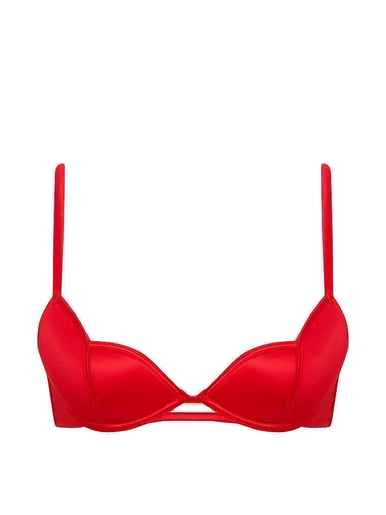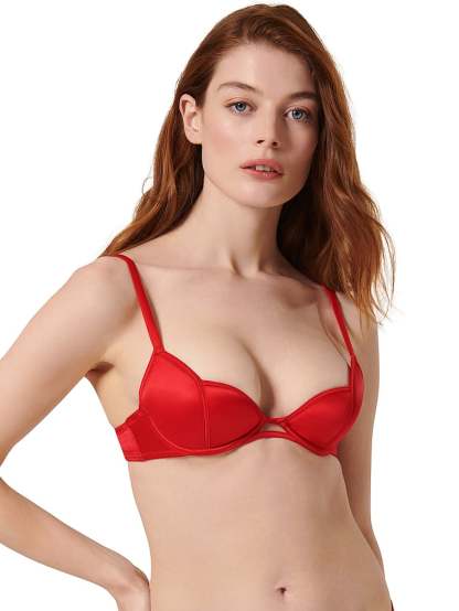 A striking piece crafted in luxe, fiery red satin, this Bra is designed for high impact with its push-up demi plunge, sculpted edges, and a playful keyhole front detail. A perfect pick for Valentine’s and beyond.
