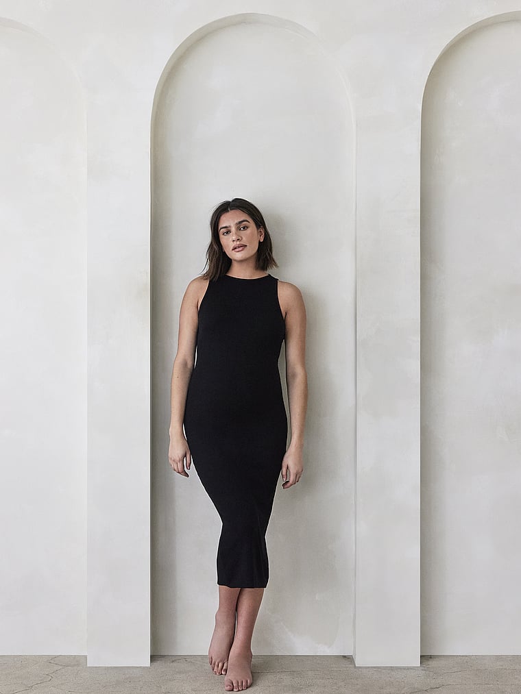 Bumpsuit Soft Rib Boat Neck Midi Dress