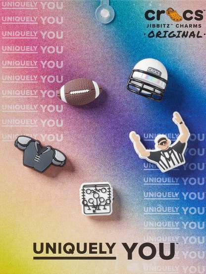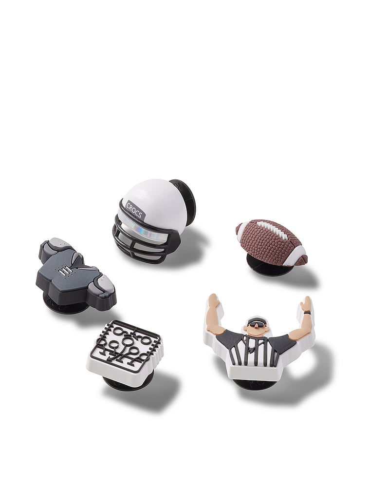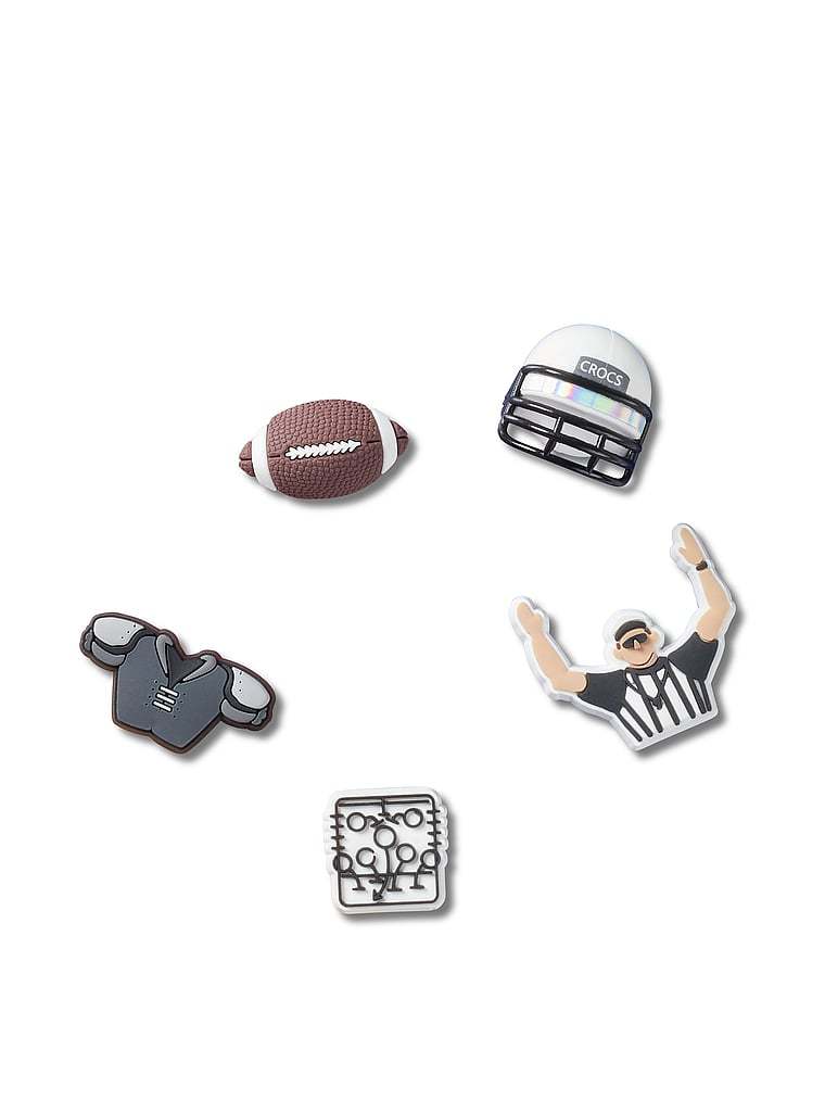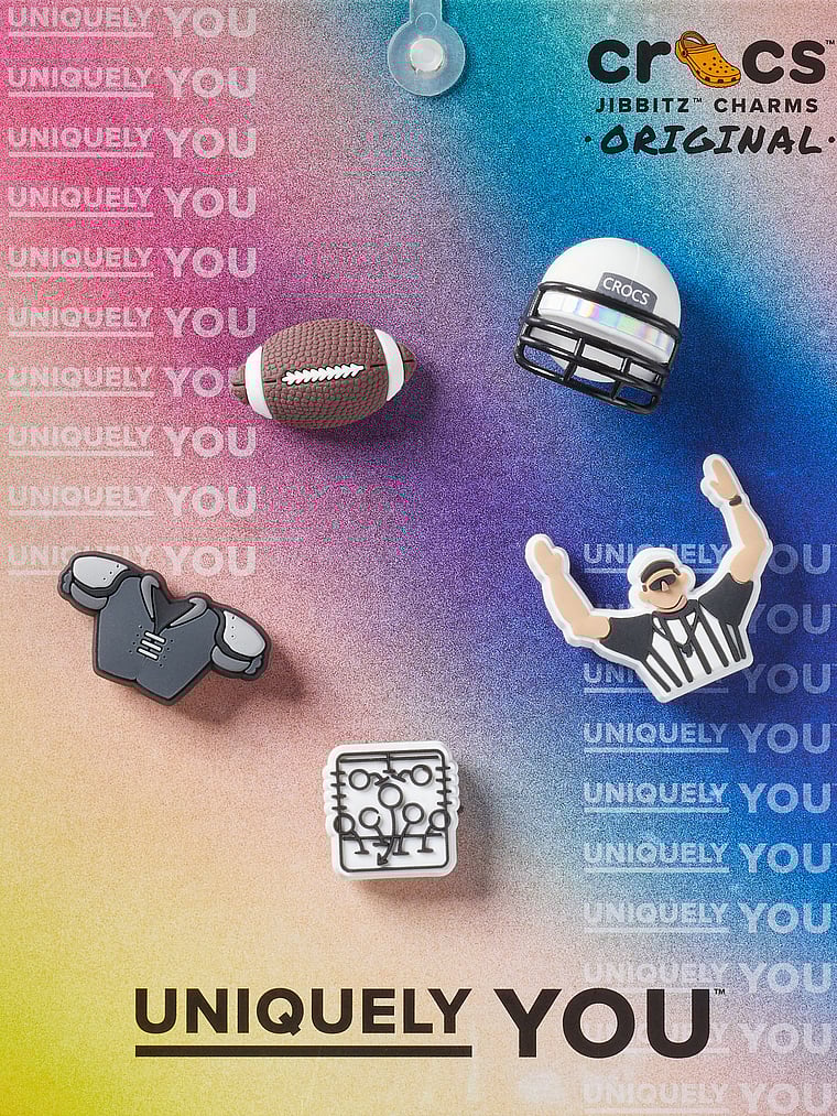 Pop some personality into your shoes with these Football Team 5 Pack Jibbitz™ charms. They’re the perfect addition to your favorite pairs of clogs, slides, and more.