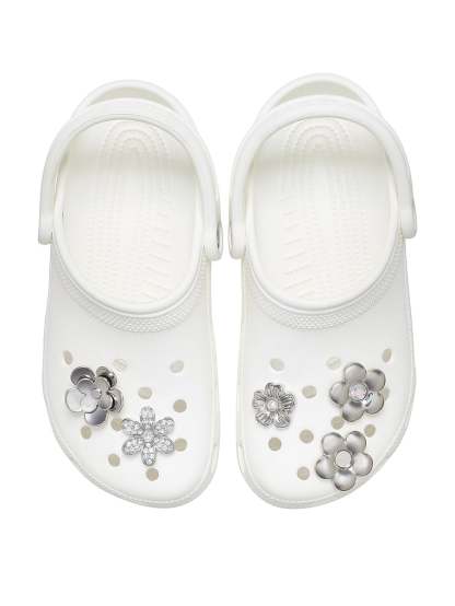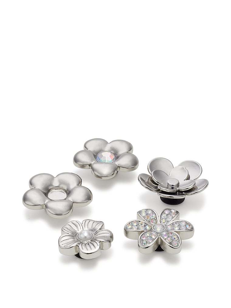Crocs 5-Pack Jibbitz Monochrome Silver Flowers Charms
