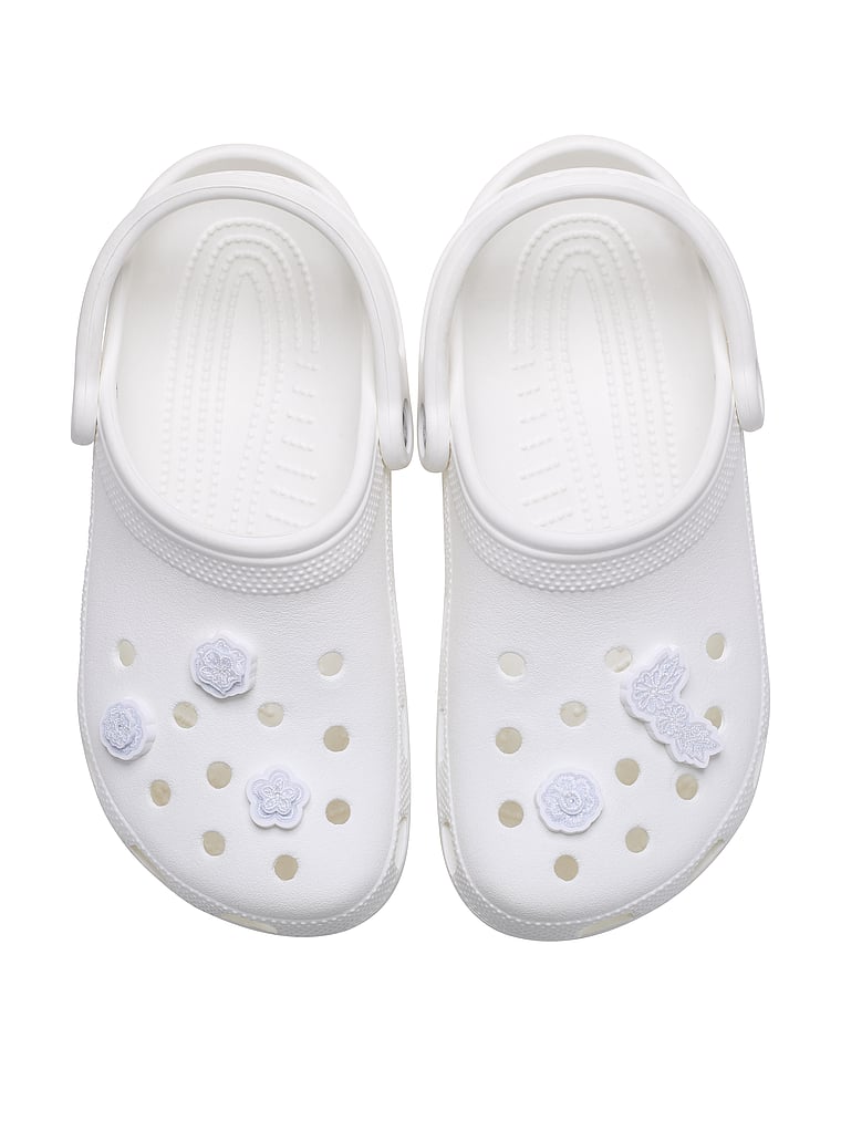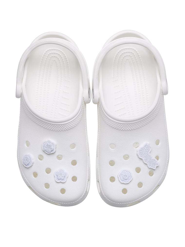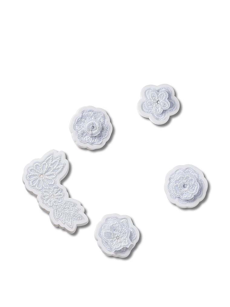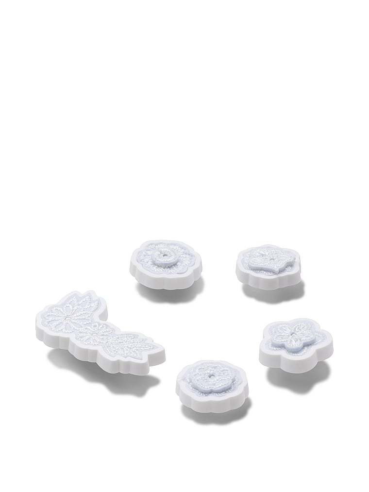 Pop some personality into your shoes with this White Elegant Floral 5 Pack Jibbitz™ charm. It's the perfect addition to your favorite pairs of clogs, slides, and more.