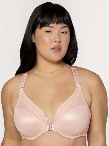 Curvy Couture Sheer Mesh Front-Close Racerback T-Shirt Bra