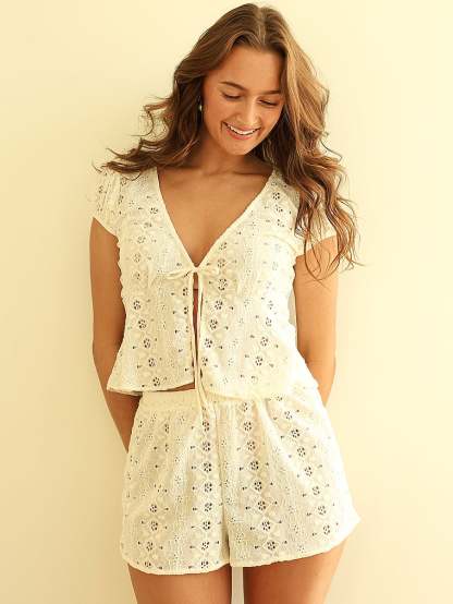 An elastic waistband and relaxed fit keep these Shorts comfortable while an eyelet design adds feminine style.