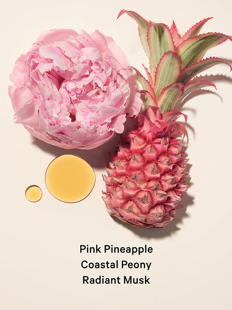 Bombshell St. Tropez is a part of the Bombshell Getaway collection that captures a European summer from coast to coast. A rare pink pineapple reveals a vibrant rush of luscious fruit in the opening of the scent. At the heart, the coastal peony provides a boost of floral radiance, perfectly encapsulating a paradise found. The effortless ease of musk elicits a brightness that shines through for a lasting under-the-sun moment.