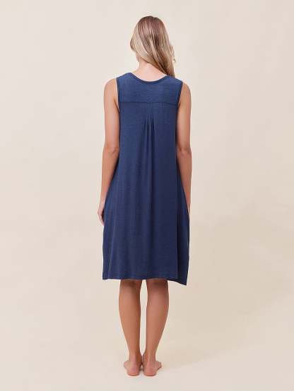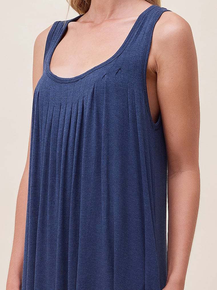 - Soft front and back pleats, scoop neck, sleeveless, side seam pockets