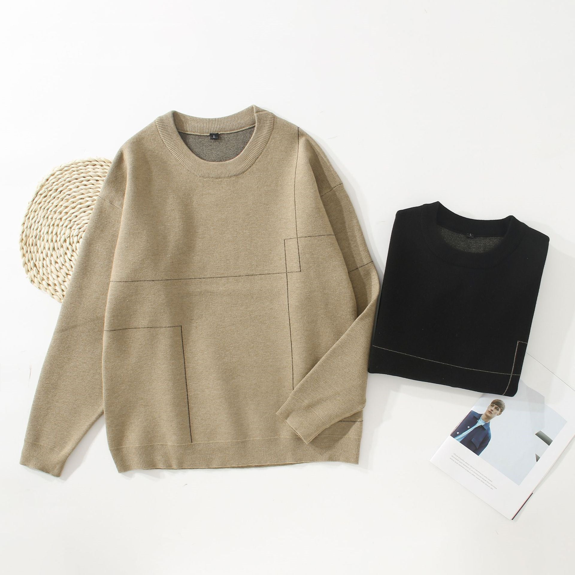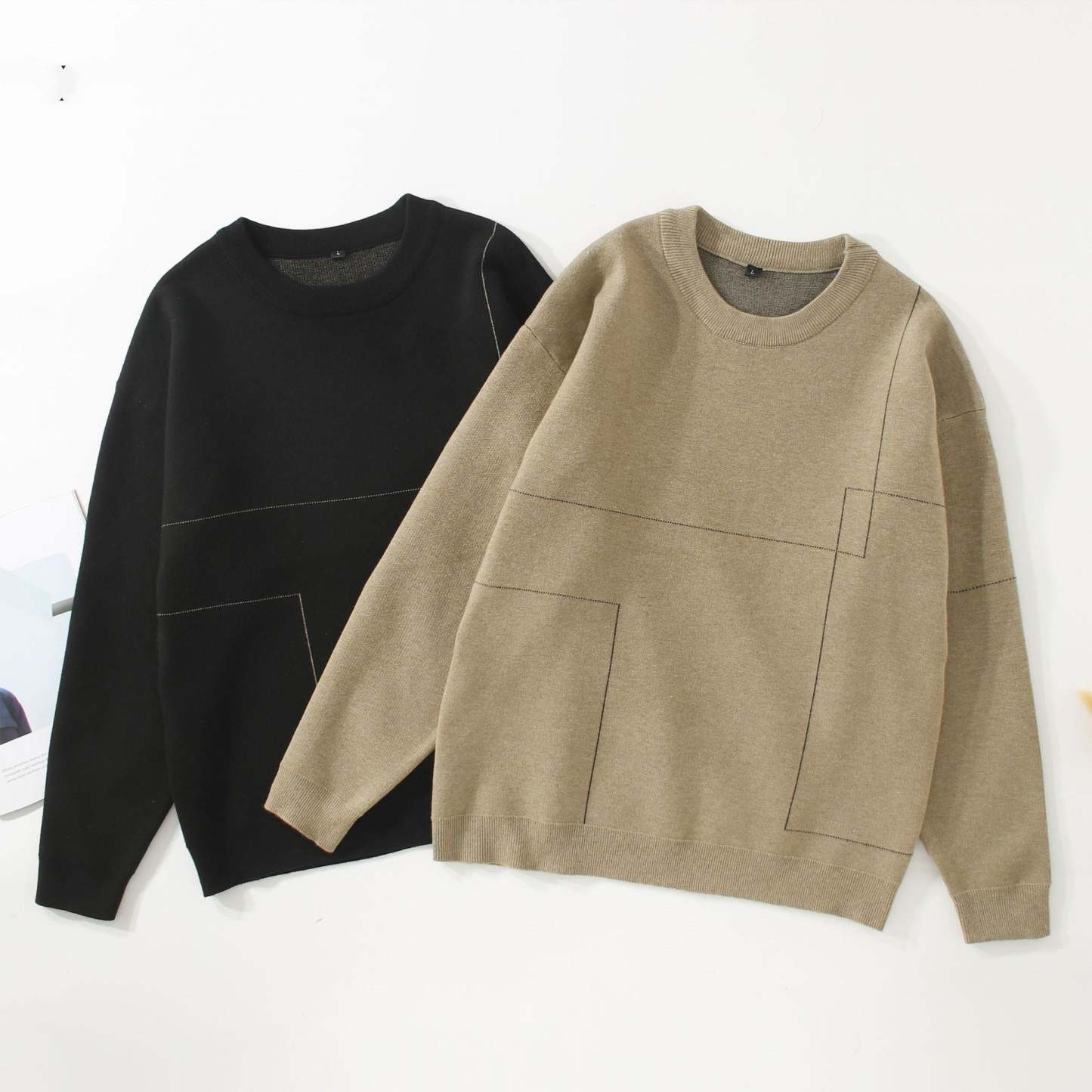 Irregular Lines Fashion Round Neck Long Sleeve Sweater Men