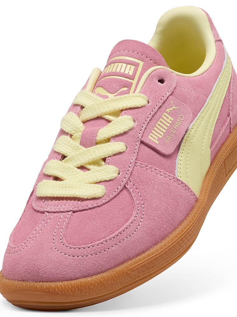 The Palermo. The silhouette debuted back in the early '80s, where it quickly became a staple among the terrace crowds in British soccer stadiums. Like the original, the Palermo is complete with its signature tag at the upper, a T-toe construction, and, of course, the classic gum sole. This version has a leather base with a suede Formstrip and suede overlays.