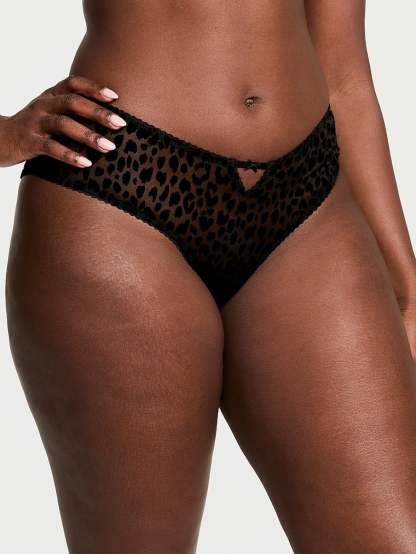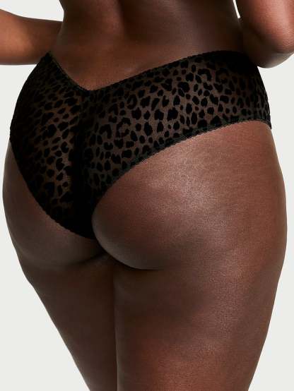 Very Sexy Flocked Leopard High-Leg Cheeky Panty Mesh