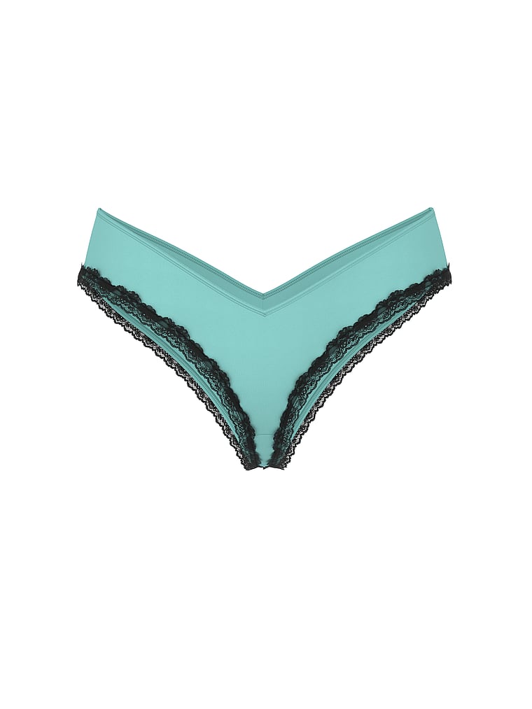 The V-cut styling and luxe lace on this silky-smooth pair make it a must-have for your top-drawer collection.