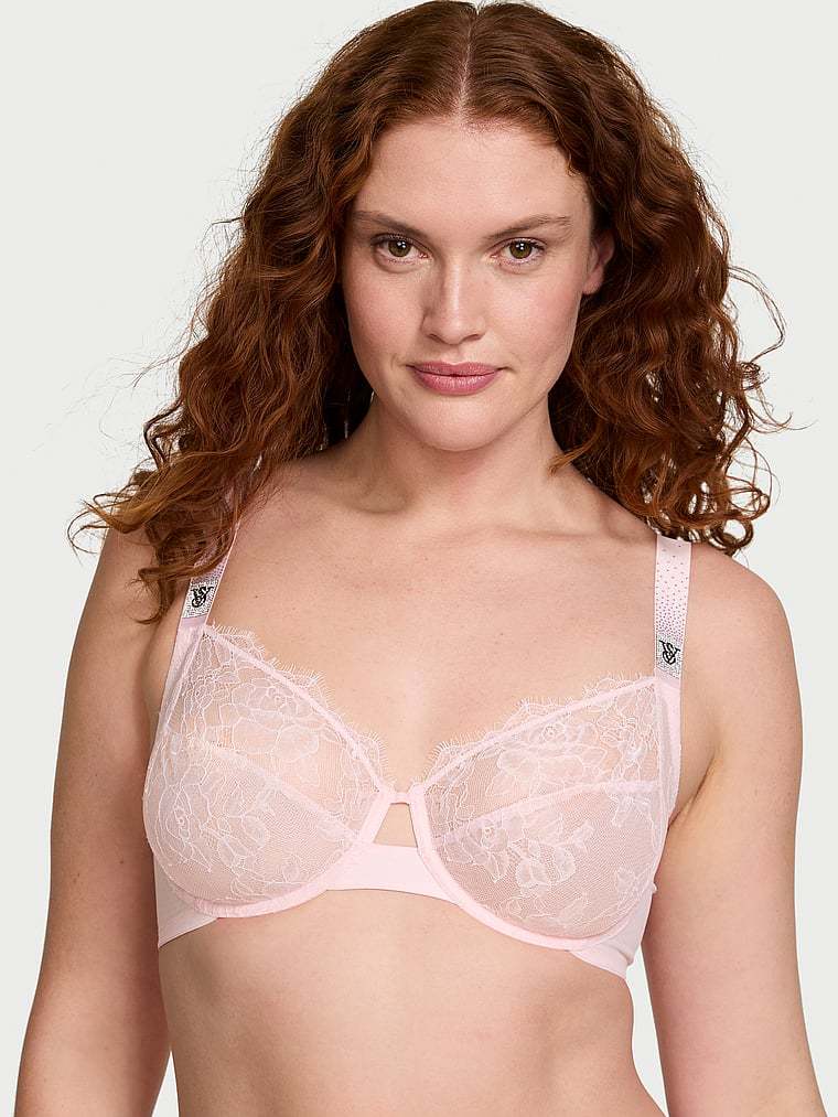 A rose motif adorns this romantic lace Bra, featuring a 3-piece construction that provides extra support and coverage for larger cup sizes. It now twinkles with a fresh take on our signature shine straps—a sprinkle of rhinestones finished with our distinctive logo.