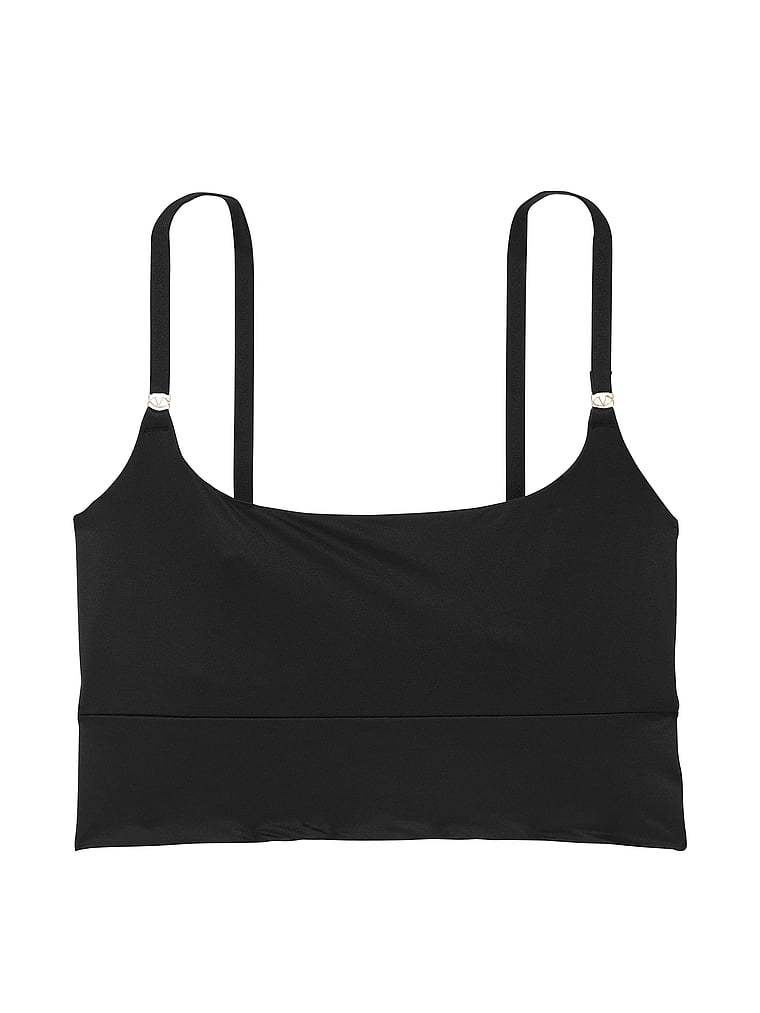 Gold-tone hardware at the straps adds a luxe touch to this easygoing, longline piece. An ideal base layer, it provides comfy, smoothing support and seamless coverage. Pair with the matching bike shorts for the complete, sleek downtime look.
