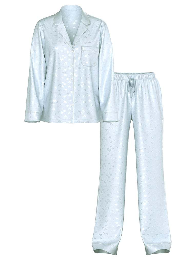 Whimsy meets luxury with our bestselling satin PJs, now in a subtle jacquard butterfly pattern. Glossy drawstring Pants pair with the matching long-sleeve Top, complete with a chest pocket.