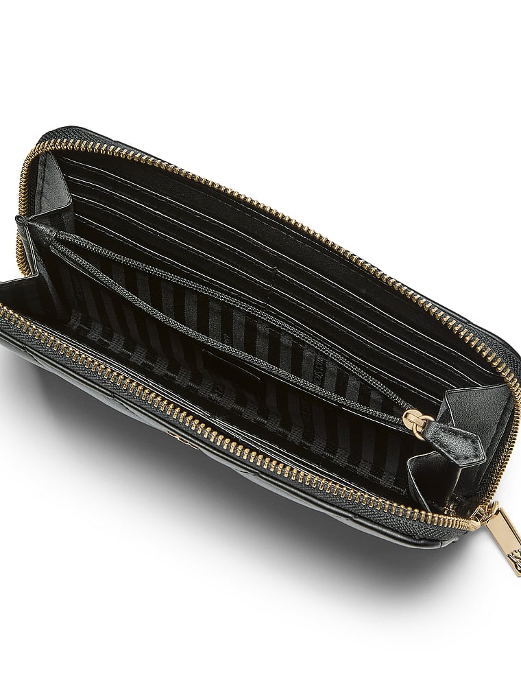 In a plush, V-quilt design with signature hardware, this versatile continental wallet features a wrap-around zip and plenty of interior pockets to keep you organized.