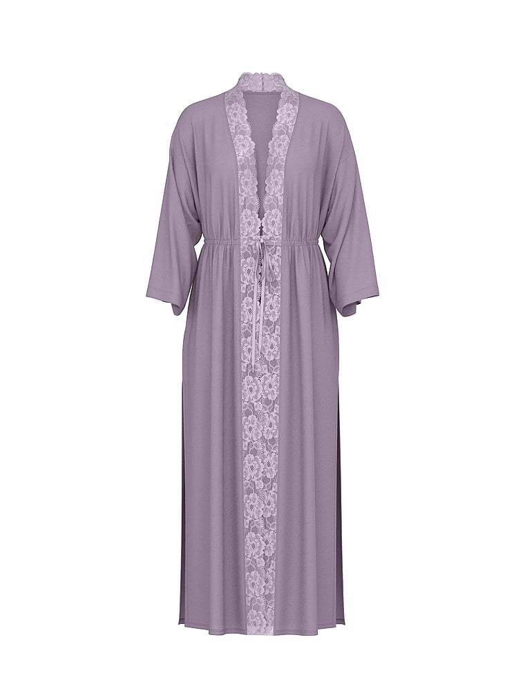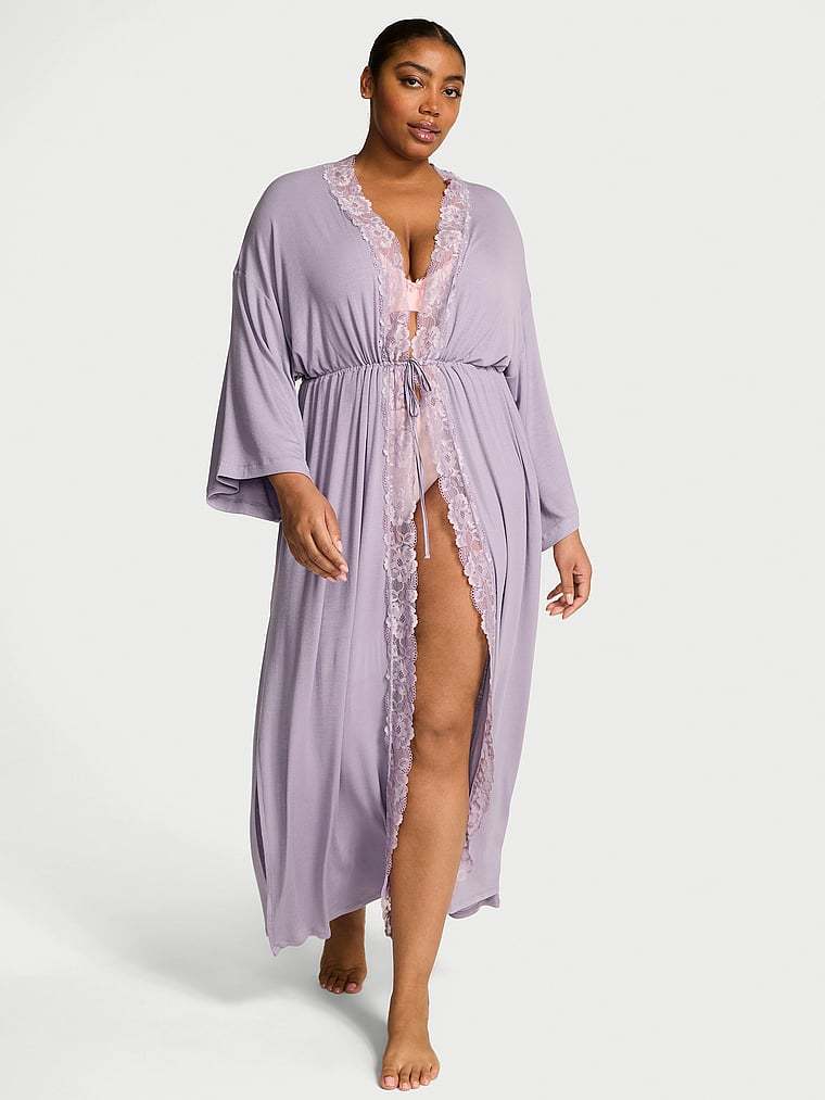Victoria's Secret Ribbed Modal Lace-Trim Long Robe