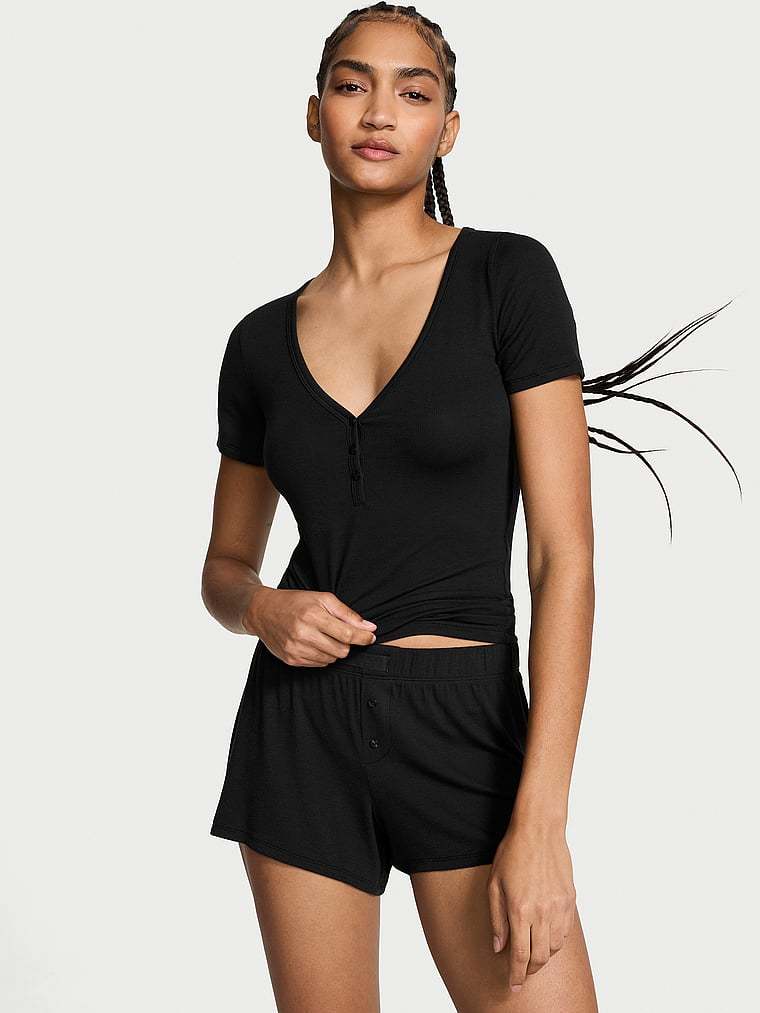 Victoria's Secret Ribbed Modal Short-Sleeve Henley & Boxer Shorts Set