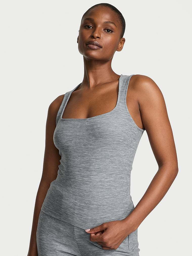 The results are in and you're loving our ultra-soft and flattering LUXMarl pieces. Grow your go-to collection with this fitted Tank, crafted in that ultra-comfy material with a cool, heathered finish. So versatile and chic, this square-neck Top offers unparalleled softness and breathability for all-day wear.