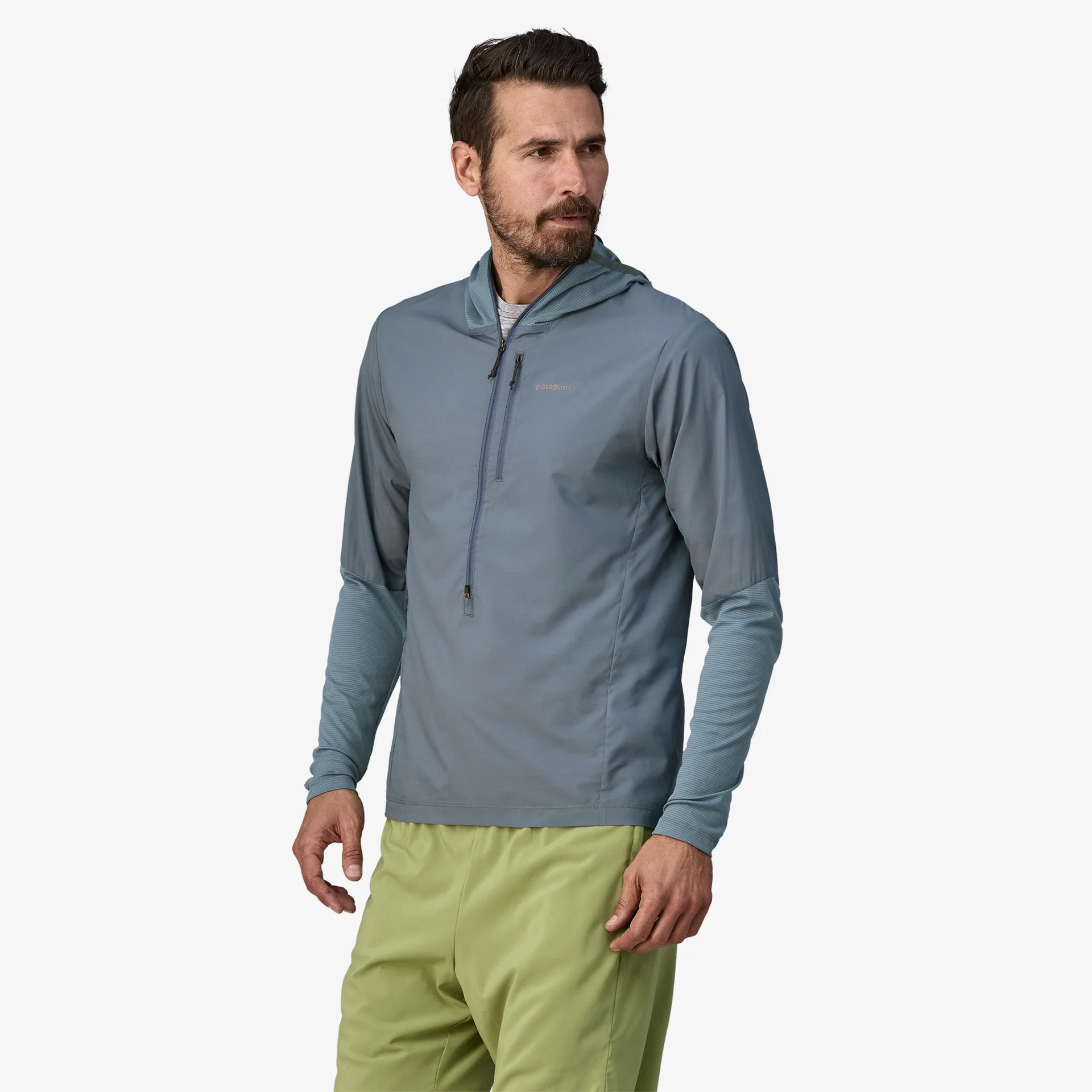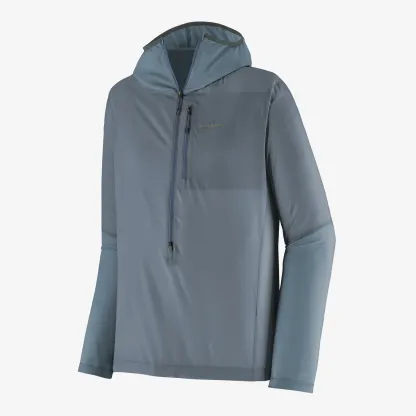 This water-repellent wind shirt is a no-brainer for runs in uncertain mountain weather. It's fast drying, ultralightweight and breathable, with a stretch-knit hood and lower sleeves, and a DWR (durable water repellent) finish that's made without perfluorinated chemicals (PFCs/PFAS). And, it packs into its own pocket for easy stowability. Made in a Fair Trade Certified™ factory.