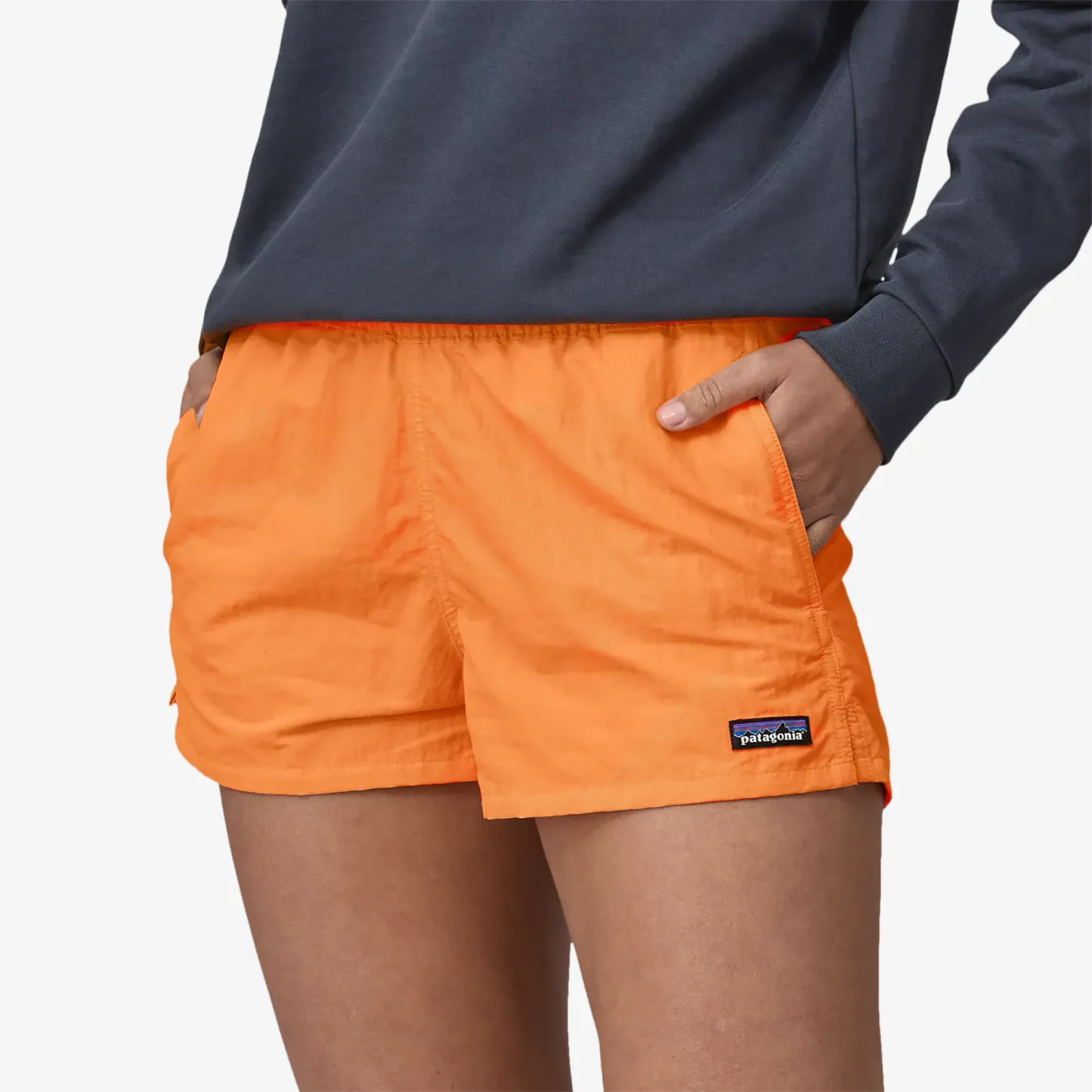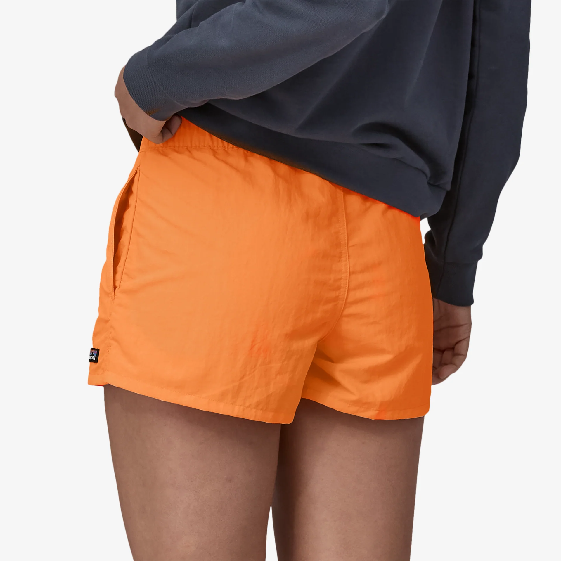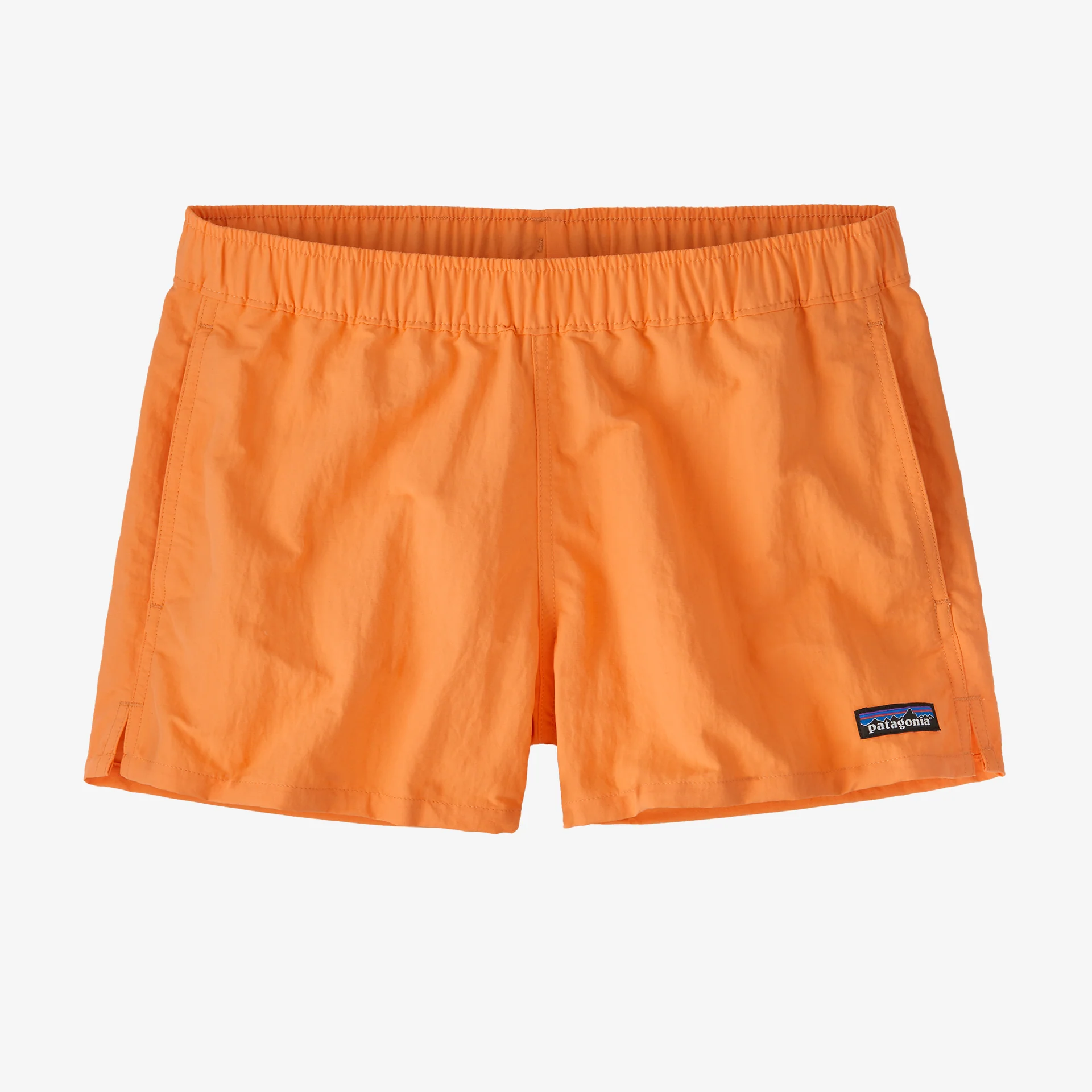 The Barely Baggies™ Shorts have a lower rise and a shorter inseam than our classic Baggies, with side slits at the hem for comfort. They're built of 100% recycled nylon faille with a durable water repellent (DWR) finish made without perfluorinated chemicals (PFCs/PFAS). Inseam length is 2½", and there's a P-6 logo at the left hem.