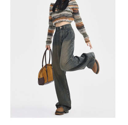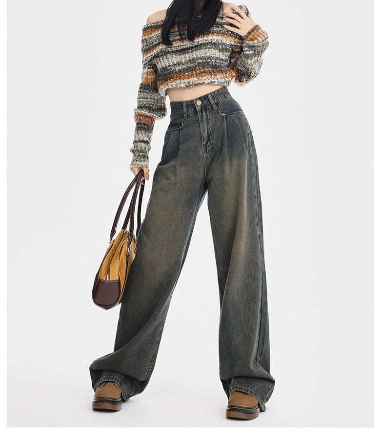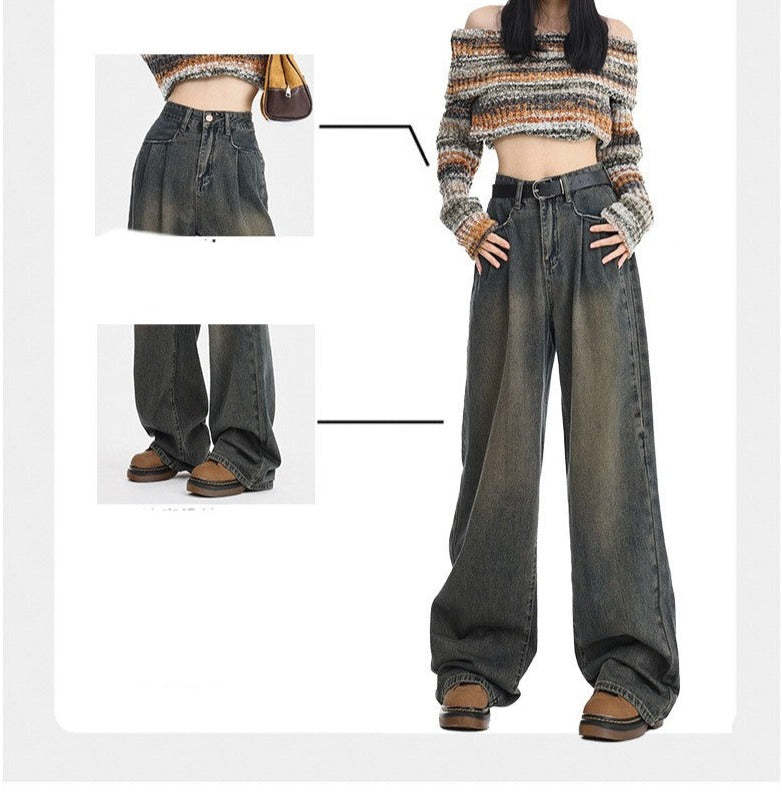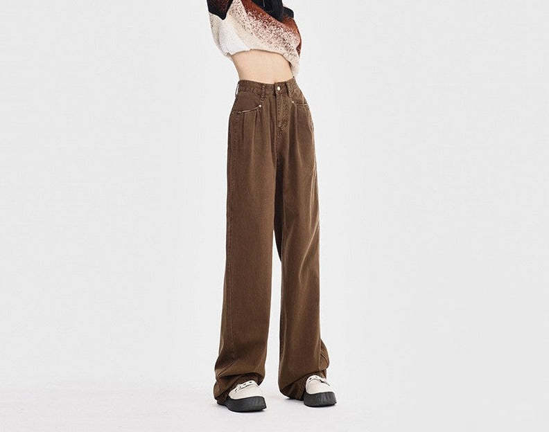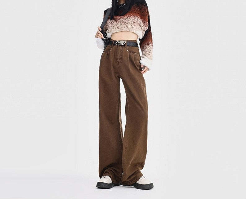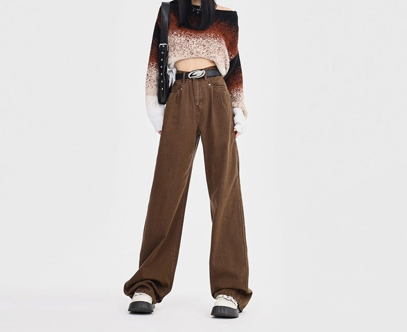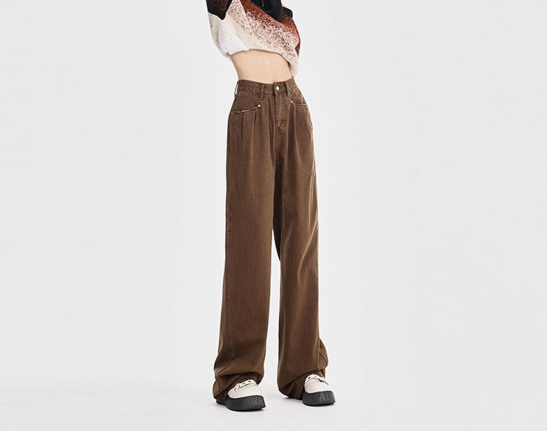 Straight Loose All-match High Waist Wide Leg Pants For Women