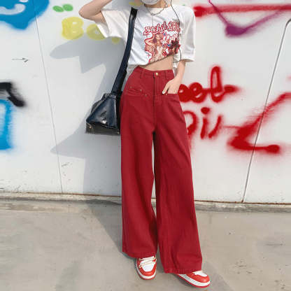 Vintage Jeans Women's Summer High Waist Loose Personality Wide Leg Trousers