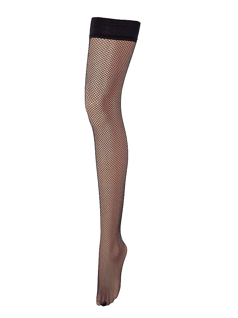 These seductive fishnet hold ups are finished with subtle stripes at the top.